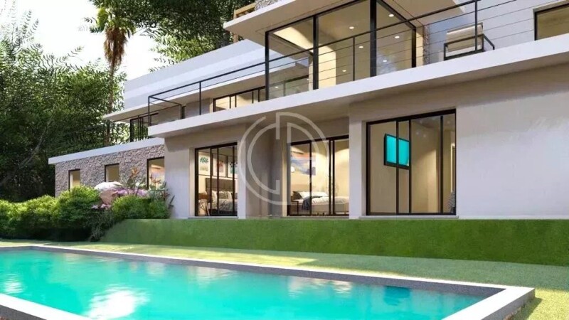 MOUGINS - 5 minutes from the village, in an area of 2 villas, beautiful contemporary. This villa consists of a large living room-fireplace/ dining room/ kitchen of 85m2, two suites with dressing room and their bathroom. Upstairs: 3 en suite bedrooms and dressing room. A basement of 170m2 (Room en suite, gym, sauna, cinema...). It has beautiful terraces and a pleasant garden complemented by a heated pool, parking. This property offers high-end and modern services (lift, air conditioning...) - During construction, possibilities of personal accommodation. Reduced fees Information on the risks to which this property is exposed is available on the Geohazards website: www. georisks. gouv. fr.