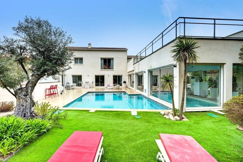 Architect-Designed Contemporary Villa with Exceptional Amenities Near Marseille & Aix-en-Provence Perched on the heights of Septèmes-les-Vallons, this architect-designed contemporary villa spans nearly 490 m², seamlessly blending elegance, comfort, and high-end features. From the moment you step inside, the home captivates with its exceptional materials, expansive volumes, and abundant natural light, creating an atmosphere of rare sophistication. An Exquisite Living Experience On the garden level, a vast and beautifully appointed living space unfolds, integrating a lounge, a refined piano area, and a relaxation zone. The meticulously designed, fully equipped kitchen transitions effortlessly between indoor and outdoor spaces, perfect for entertaining. A second lounge opens onto a terrace and the outdoor pool, offering a soothing view of the heated indoor pool, establishing a seamless connection between the two. This level also includes two elegant bedrooms, a double study, a shower room, and a separate toilet. A Master Suite of Unparalleled Luxury Upstairs, accessible by lift, the master suite is a private sanctuary featuring a spacious bedroom, an intimate lounge, two bespoke dressing rooms, and a refined shower room with a double shower and toilet. A separate study enhances the space, while adjoining roof terraces provide panoramic views of the landscaped gardens. A Sanctuary of Wellness & Leisure The basement is entirely dedicated to well-being and leisure, boasting a private spa with a hammam and sauna, a state-of-the-art gym, an elegant cigar lounge, and an exceptional wine cellar. A spacious laundry room and a secure garage complete this level. A Verdant Outdoor Haven Set within approximately 2,000 m² of meticulously landscaped grounds, the villa offers multiple spaces for relaxation, including a pool house with bar, a summer kitchen, an outdoor shower, a Jacuzzi, and a pétanque court—perfectly embodying the refined Mediterranean lifestyle. Equipped with an internal lift, this rare and prestigious residence redefines luxury living in a serene and privileged setting. Prime Location Ideally situated just 15 minutes from Marseille and 20 minutes from Aix-en-Provence, Septèmes-les-Vallons offers both tranquility and easy access to major routes, ensuring seamless connectivity to all essential amenities. For a private viewing of this exceptional property, contact us today.