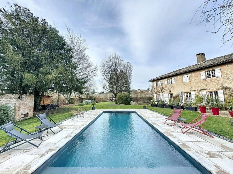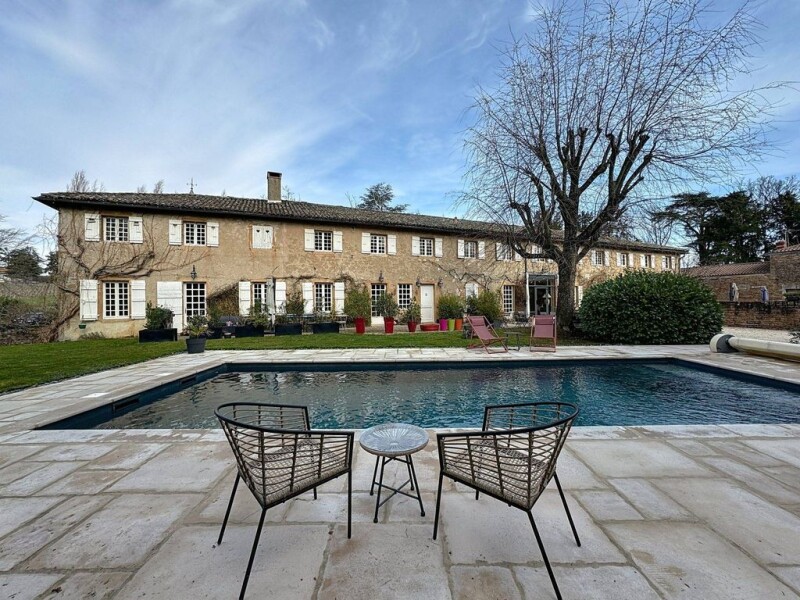 In the commune of Charnay les Macons, in the the wine producing region of south Burgundy, a stone's throw from major motorways and the Macon Loche TGV station (Paris, Gare de Lyon 1h35 away): Sumptuous 18th century stone property, nestled in the heart of almost 7000 m2 of fully enclosed wooded parkland. Completely renovated in 2021, this residence combines the charm of the past with modern comforts, beautiful fittings, old materials preserved and enhanced : High ceilings, stone jambs, parquet flooring, stone... This exceptional property is ideal for everyone: people wishing to make use of the existing guest rooms and gite, investors, people looking for a primary or secondary residence, double occupancy, etc. - Company shares can be bought back. The house currently comprises three parts: Main house: 265 m2 of independent living space, comprising on the ground floor a beautiful, large fitted kitchen (approx. 37m2), a lounge/dining room with a magnificent stone fireplace (approx. 56m2), a hallway, a toilet, a utility room and a large master suite with en suite shower room ((14m2). Upstairs, four large, bright bedrooms and three bathrooms. Guest rooms : Five very elegantly decorated guest rooms, each with its own bathroom, ready to welcome visitors in search of tranquillity. Self-contained gite: 80 m2 with two bedrooms, two bathrooms and a fully-equipped kitchen, ideal for extended stays or to generate rental income. There's also a heated swimming pool and a wellness area with sauna for absolute relaxation. Technical features include: Water softener Well (with overflow) Two single and three-phase electricity meters Sewage system: two new, compliant micro-stations (2020) Guest room + gite: 268.76 m2 Main house: 252.8 m2 Optional purchase of all furnishings to ensure continuity of operation if desired. Full details and costs on request.