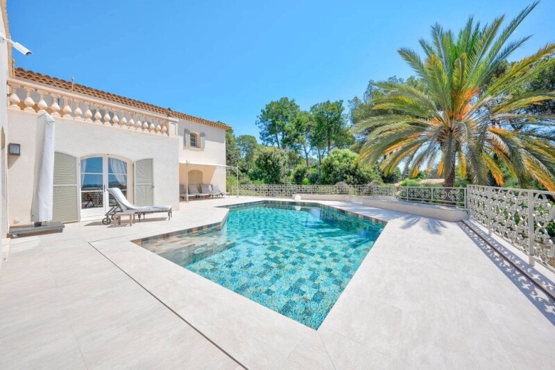 Magnificent property combining charm and authenticity offering large volumes and refined appointments, offering panoramic views of the hills and the sea in the heart of a calm and preserved environment. The property consists of a main villa and 2 apartments, a 110m2 2 bedrooms, and a 42m2 1 bedroom. You will be charmed from the entrance which is through a very nice patio with its fountain, which leads you to the main villa composed as follows: entrance, large living room with fireplace opening onto a large covered terrace, dining room, large dining fitted kitchen, scullery, pantry and laundry room, large study, 3 bedrooms and their en-suite bathrooms, upstairs: 3 other en-suite bedrooms, including a master opening onto a beautiful terrace with sea view, at garden level, large living room with bar and play room opening onto terrace, gym, sauna and jacuzzi, cinema room and wine cellar. Beautiful landscaped garden over 4,400m2 with swimming pool, planted with Mediterranean species, numerous palm and olive trees. Double garage with workshop, carport, several parking spaces. Ideally located in a residential and sought-after domain, 3 mins from shops and all amenities, 5 mins from the villages of Valbonne and Biot, 15 mins from the sea, 25 mins from Cannes and Nice airport. Unique family property or or to entertain friends, or an interesting prospect for investors as it could create significant rental income. Information on the risks to which this property is exposed is available on the Geohazards website : georisques.gouv.fr.