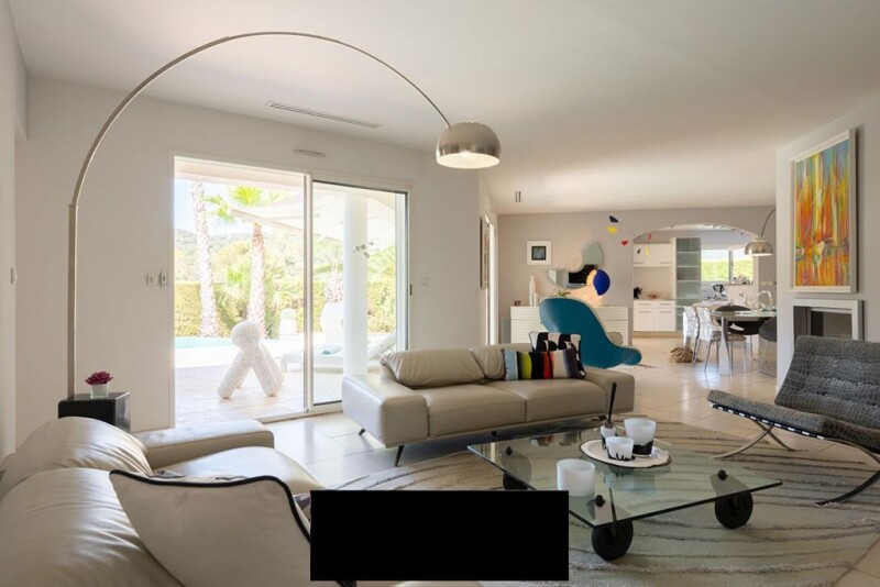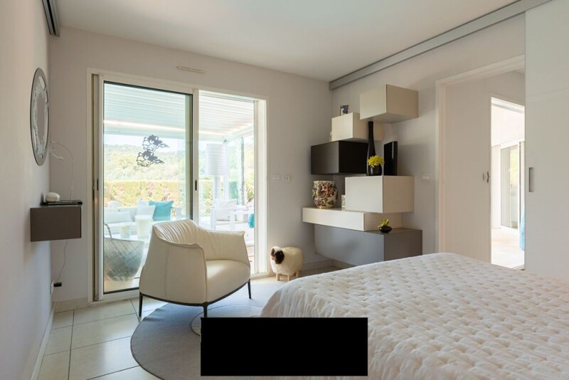 Ideally located in La Londe les Maures in the Var, in an authentic hamlet in the heart of a prestigious vineyard, hides this elegant architect's house. The arrival is via a small path and from the secure gate, a large paved parking lot and its carport welcome us. Then the entrance quickly makes us discover the white and refined universe of the vast living room with right-angled windows opening onto the terrace. The eye is drawn to the azure expanse of the infinity pool against the green backdrop of the surrounding countryside and the garden below with its palm tree plantations. On one level, the villa, with a star-shaped plan, develops its 150 m2 in two distinct parts: the living area with its living room and its open kitchen with white marble worktop, its equipped back kitchen serving as a laundry room and direct access to the 40 m2 garage. The sleeping area includes a bedroom and its bathroom, an office, and two bedrooms on either side of a bathroom with immaculate, matte elements. A 12 m2 custom-made dressing room will make "fashionistas" dream and will further emphasize the feeling of living in a 5-star hotel. The bedrooms open onto a 40 m2 bio-climatic pergola with quality materials and sliding windows for an ideal temperature in all seasons. Under the heated swimming pool in Briare enamel, the technical room and a cellar. Another asset: the property's water is supplied by the Canal de Provence. The choice of materials, the attention paid to the smallest details in the construction and comfort, the careful decoration, the calm and the brightness make this property a rarity not to be missed! Contact us today to find out more.