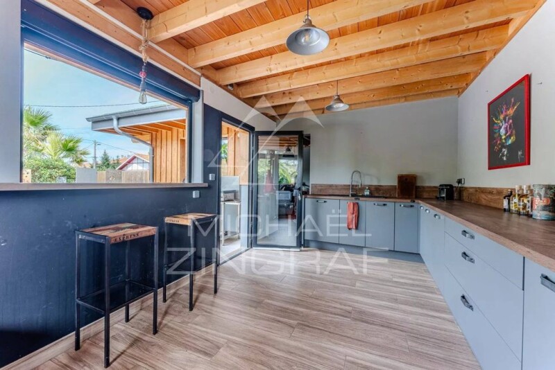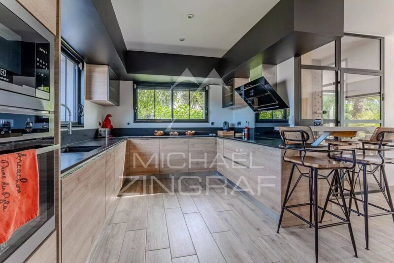 Stunning prestigious villa located in La Teste de Buch on the Arcachon Bay. Recently built, this property consists of 3 spacious bedrooms, a large swimming pool, a pool house, and a jacuzzi. The villa is situated in a quiet and peaceful neighborhood, surrounded by a beautifully landscaped garden. The high-end features of this property are unmatched. The house benefits from plenty of natural light thanks to its large windows, offering breathtaking views of the lush garden. You can enjoy the tranquility and serenity of the place while having easy access to shops and amenities. The villa is equipped with a modern, fully equipped kitchen, as well as a large living room providing a comfortable and refined living space. The bedrooms are all tastefully furnished, offering a space for relaxation and privacy for the occupants. The large outdoor swimming pool is a true haven of peace, perfect for relaxing and enjoying the region's sun. The pool house is ideal for barbecues and evenings with friends, while the jacuzzi provides a way to unwind after a busy day. This villa is a real gem on the Arcachon Bay, offering an exceptional quality of life in a privileged setting. Don't miss this unique opportunity to live in a prestigious property in La Teste de Buch.