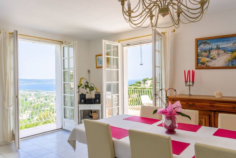 Family villa in Cavalaire, nestled into the hillside offering a breathtaking sea view. Ideally located in a quiet sought after residential area. This villa with pool and terraces was built in 1991 has an area of 130 m2 on 2 levels with fully landscaped and enclosed grounds of 1,358 m2 boasting an exceptional 180 degree sea view out over Cavalaire Bay. Once inside the property offers an entrance hall, bright open plan living room with a fully equipped open kitchen with access out onto a superb large terrace overlooking the Mediterranean, a bedroom, bathroom and toilet with access out to the terrace. On the lower level: 3 bedrooms, shower room and toilet. Several parking spaces complete this excellent Provencal sea view property.