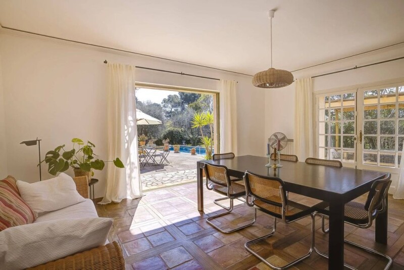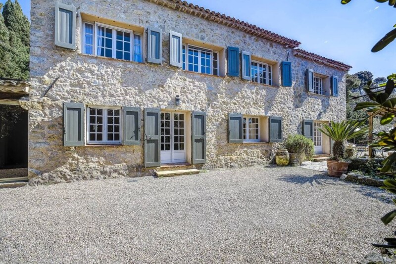 This charming property, a renovated former sheepfold with stone walls and large terraced grounds, enjoys a privileged location in a residential area of Mougins, in absolute peace and quiet with unobstructed views over the greenery. The 200 m2 main villa features an entrance hall, two living rooms, a dining room, a kitchen, a laundry room and a guest toilet, complemented by a large terrace by the pool. On the first floor, there is a very large Master bedroom with its own shower room/WC and dressing room, and three other interconnecting bedrooms, as well as a shower room/WC. An annex of around 70 m2 with living room, kitchen, bedroom and bathroom/WC benefits from an independent entrance with gate and could accommodate friends or staff. Pool house with summer kitchen, carport and garden shed complete the ensemble. The property is set in grounds of approx. 5066 m2 with century-old olive trees, Mediterranean species and a well. The land can be divided for a new building project, with the possibility to detach 2 plots of 1011 and 1183 sqm (15 percent constructibility, plans on request). Charming Provencal Mas!.
