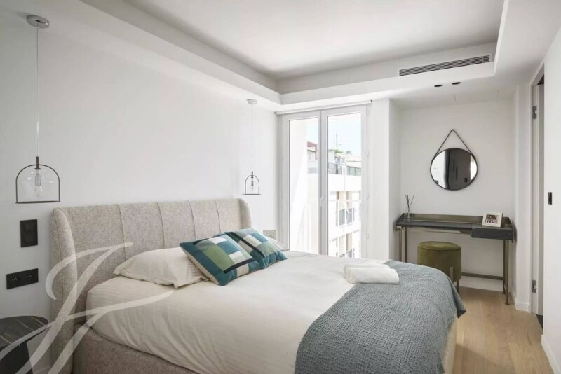 Located on the penultimate floor of a luxury residence on the Croisette, this beautiful 4-room apartment offers a magnificent view of the sea and the Esterel mountains. Entirely renovated to a high standard, it comprises a living room with open kitchen, three bedrooms, each with its own shower room, and an 11 m² southwest-facing terrace. A garage is included. Nearby beaches and shops. Garage optional (€130,000).