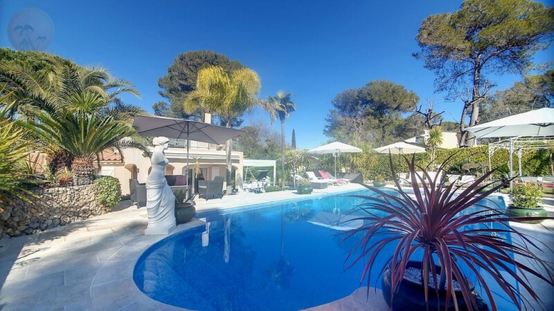 House for sale in MOUANS-SARTOUX Limite MOUGINS in absolute calm, superb house of 250 m2 (LC 200.28 m2) with its caretaker's house and its guest apartment in a private residence with numerous outbuildings on a plot of 1,675 m2 with swimming pool traditional and jacuzzi. The main house with 6 rooms of 160 m2 is composed of a living room, a separate fitted kitchen opening onto a bioclimatic pergola, a bedroom on one level with a bathroom, wc and walk-in shower, a gym with sauna and at the back of the house a play area, upstairs you will find a master suite with bathroom wc as well as a large solarium terrace and another bedroom with a shower room. A guest apartment with 2 rooms on the ground floor with an open kitchen, a bedroom, a bathroom and wc. The caretaker's house is composed of a living room, a kitchen, a bathroom with toilet and walk-in shower as well as 2 bedrooms. There is also a chalet with a living room, a kitchen, a bedroom and a bathroom. The house is fully air conditioned and there is heat pump central heating. Ideal for a large family looking for peace and security or for rental and bed and breakfast. Fees included at the expense of the seller. CANNES AZUR IMMOBILIER sectors CANNES, LE CANNET, MOUGINS, MOUANS-SARTOUX, VALBONNE, LA ROQUETTE SUR SIAGNE... 04.93.69.22.31.