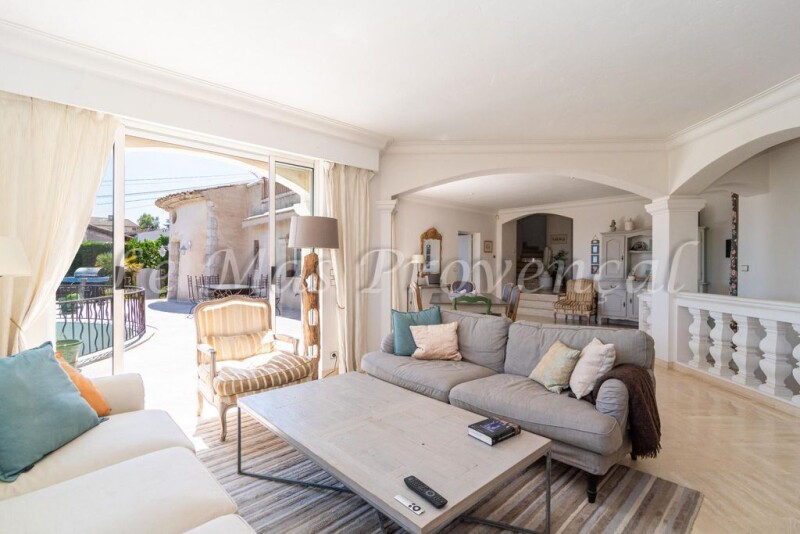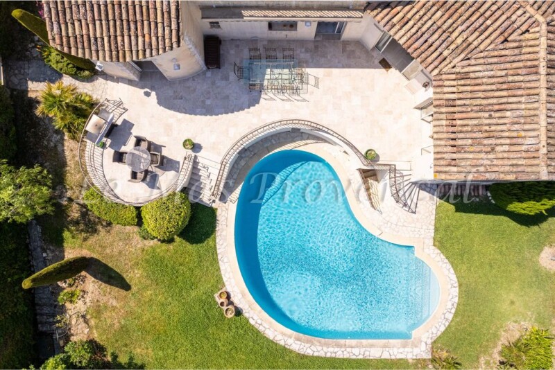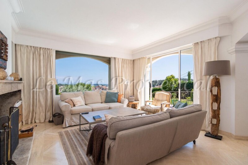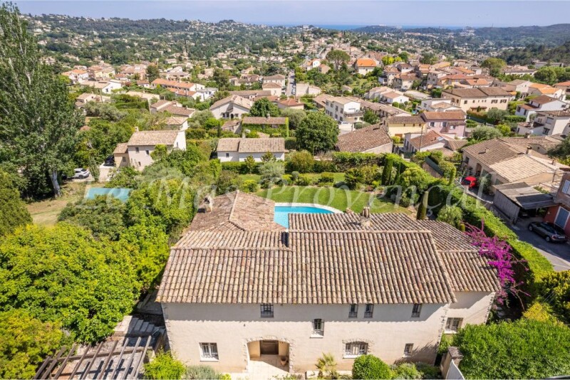 On foot from the village of LA COLLE SUR LOUP and enjoying a postcard view of the surrounding hills and the sea, come and visit this charming 225m2 villa which will seduce you with its location, its dominant position and its calm. It consists of a beautiful entrance serving the living-dining room with fireplace of almost 50m2, a kitchen with dining area, a laundry room, a private parental area of 45m2 including a large bedroom, a dressing room and a bathroom. bathroom with shower and bath and toilet. Upstairs, the bedrooms all have access to a terrace with a sumptuous view of the horizon, two are suites with private shower room and toilet, the third has a bathroom with access from the hallway. Last but not least, on the lower garden level, the villa has an independent bedroom and/or connected to the house with shower room and toilet. In the annex, there is a shelter for two cars, a workshop, cellar, local swimming pool and boiler room. Magnificent free-form swimming pool with landscaped and planted garden of 1367m2. A real cocoon not to be missed!.