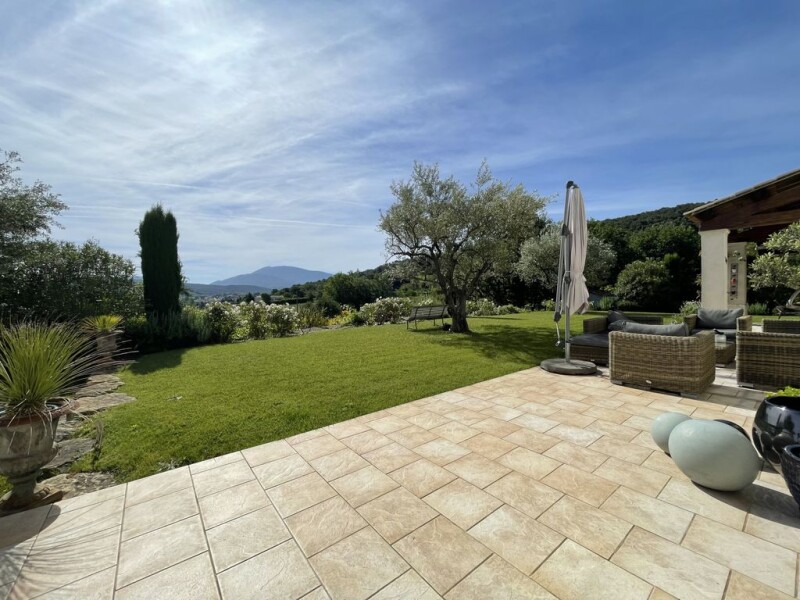 Provence, Vaucluse, the Lord and Sons agency offers for sale in the countryside of Vaison-la-Romaine this magnificent bastide with a breathtaking view of Mont Ventoux with an area of approximately 224 m2, with heated swimming pool, on land of more than 3000 m2 nicely decorated with Mediterranean species and a lawn with automatic watering. The bastide, built with quality materials, offers every comfort: underfloor heating, fireplace, air conditioning on the ground floor.. .The ground floor is composed as follows: An entrance hall with wardrobe which opens onto the living room and the living room, with a view of the Giant of Provence. As an extension, an open fitted kitchen opening onto a covered terrace with summer kitchen and barbecue. Adjoining the kitchen, you will find a pantry and the adjoining garage, as well as an air-conditioned wine cellar in the basement. Upstairs there are 4 bedrooms, a bathroom with shower and toilet, as well as a dressing room. Gas heating, mains drainage, town water and drilling. You will be seduced by its environment, its view and the charm of this bastide. To see without delay.
