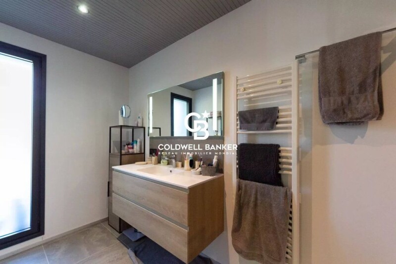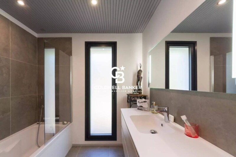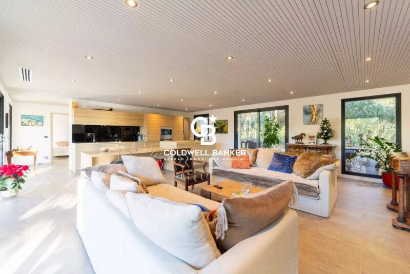Coldwell Banker Jager Real Estate agency exclusively offers you this superb recent single-storey contemporary house, quietly located in the countryside between Grimaud and Cogolin. Passive house with a wooden frame. A 50 m2 living room with a fully equipped open American kitchen, pantry/laundry room; 4 bedrooms, including a master suite with a bathroom and dressing room. One shower room. Garage. Carport. Ducted reversible air conditioning. 8x4m swimming pool with cover, automatic watering, complete gate, and fencing. Very nice amenities. A favorite is guaranteed! Must be visited quickly.