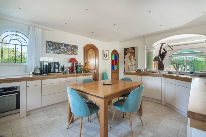 Rare on the market, just a few minutes from the center of Aix-en-Provence, this stunning 465 m² property, set on 11,500 m² of land, offers a peaceful and private living environment, a true haven of tranquility. Upon entering, you will be captivated by the spacious 130 m² living room, featuring a high ceiling and a cozy fireplace, open to a fully equipped kitchen and dining area, creating a bright and inviting living space. A large laundry room and an office complete this level, with access to a summer kitchen and covered terrace. A first sleeping area, which could be fully independent, includes two bedrooms, a bathroom, a kitchen, and a living/dining room. Upstairs, a large hallway leads to a luxurious master suite with a bathroom and private terrace, as well as another sleeping area with a bedroom and shower room. On the garden level, another sleeping area with a living room and shower room could easily be converted into an additional independent unit. The property also offers numerous storage spaces and cellars. Outside, you’ll find a beautifully landscaped park, an infinity pool, and several terraces, perfect for relaxing and entertaining family and friends. Additionally, the property is equipped with 80 solar panels for optimized energy consumption, along with reversible air conditioning and a video surveillance system. A rare and exceptional property, ideal for an unparalleled quality of life. Mandate n°1267 - Aix-en-Provence Sotheby's International Realty, the international reference in luxury real estate in Aix-en-Provence.