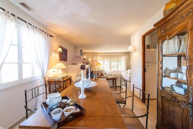 COGOLIN | IN THE COUNTRYSIDE | CHARMING VILLA WITH INDEPENDENT GITE AND OUTBUILDINGS - STUNNING VIEW OF THE SURROUNDING AREA Charming property surrounded by woods, vineyards, pines, cork oaks, ... 3 km from the center of the village of Cogolin and the beaches. The property consists of a two-story main house and a gîte, with a living area of 242 m². Particularly neat and refined decoration! An oasis of calm, in the immediate vicinity of the beaches, the city center, St. Tropez (12 km), the sublime beaches of Pampelonne. The house Ground floor: large living room (ceiling with massive beams); bright kitchen. Access to the terrace. Very large fireplace, expressing the rustic and refined character of the property. The outdoor terrace of approximately 48 m², crowned with an awning, overlooks the panorama of the Massif des Maures. Lower level: 3 bedrooms with a bathroom or shower room. Access to the upper floor of the gîte. The cottage: Independent entrance through the garden (+/- 600 m²). A large covered summer kitchen (+/- 48 m²). Ground floor: living space with a beautiful view. Kitchen and pantry, open to the living/dining room with access to the garden. A vaulted room, with marble floor. The bedroom, equipped with a shower room and separate toilet, opens onto the covered terrace. Upstairs: a very bright room. A large bathroom. Intimate view of the garden. Annexes: a vaulted cellar, a woodshed, a room and a shed (+/- 70 m²). Possibility of building a swimming pool and a pool house.