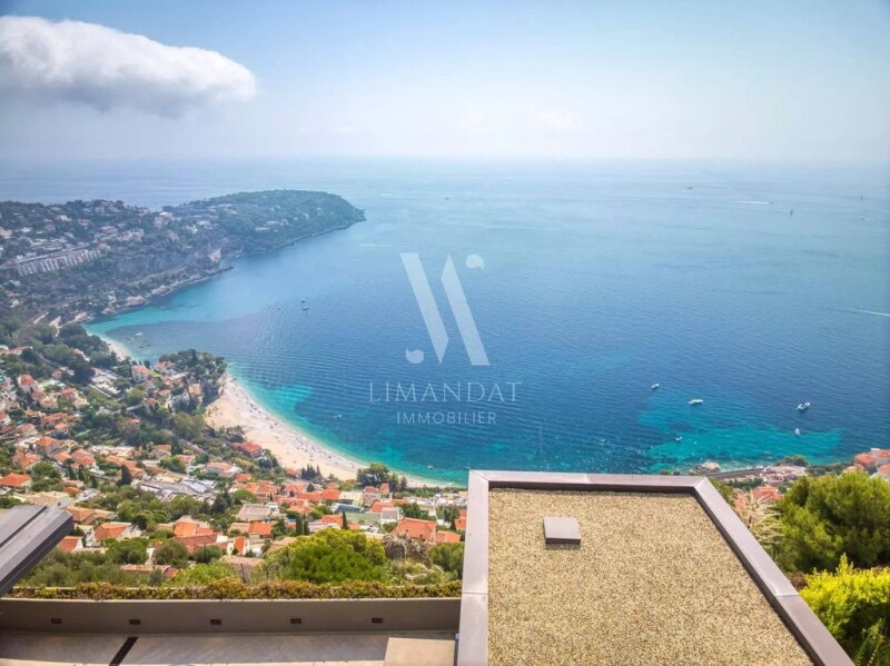 ROQUEBRUNE-CAP-MARTIN, 5 minutes from Monaco, quiet, panoramic view 180°, sumptuous property of a living area of 570 m2 built on landscaped land of 3,780 m2, large garage, parking and heated infinity pool. The villa with contemporary style and large windows, with high-end finishes is on 3 levels easily accessible by elevator. It consists of 7 bedrooms all en suite and 8 bathrooms, with many relaxation areas, gym, jacuzzi, sauna, hammam. From the entrance, a large living space opens onto the outside thanks to the large windows. The living room, dining room and kitchen open directly onto the main terrace, where there is a heated infinity pool. A second professional kitchen allows to prepare meals in complete discretion. Upstairs, the master suite has a dressing room, private living room, large bathroom and terrace with sea views. A second bedroom in suite completes this level. On the ground floor, a temperature-controlled wine cellar, an equipped gym and a wellness area with jacuzzi, hammam, sauna and massage room offer an ideal setting for relaxation. An independent apartment, perfect for staff or guests, has its own access. From this floor, you can access the gardens and a rest area facing the sea. The property includes a closed garage for three cars, several outdoor parking spaces and an integrated security system. Just five minutes from Monaco, this villa combines comfort and privileged location. Fees to be borne by the seller.