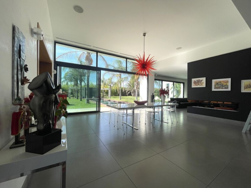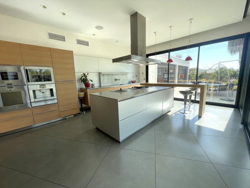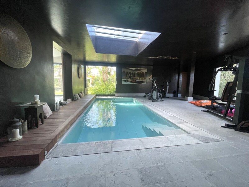 Located in the prestigious residential area of Mas Llaro, this unique architect-designed villa has over 468 m2 of living space, built on a vast wooded plot of 5,389 m2. It stands out for its elegant design, bright spaces and modern comfort. The entrance opens onto a vast living room of 110 m2, an open space bathed in light overlooking the garden and swimming pool. The kitchen and its outbuilding are perfectly equipped. Two independent accommodations of 33 m2 each with private terrace allow you to welcome guests in complete tranquility, ideal for families or to develop a rental activity. The 66 m2 indoor relaxation area offers a heated swimming pool of 6 x 3.5 m with counter-current swimming, a sauna hammam, shower and toilet offers a unique place of relaxation. Upstairs, discover a superb 95 m2 master suite with incomparable luxury, terrace and view of the park, a second bedroom with bathroom completes the floor. Private terraces allow you to fully enjoy the outdoors. A 130 m2 garage equipped with an electric vehicle charging system. A 90 m2 machine room manages the villa's equipment. The 5,389 m2 plot includes a pétanque court, a grill area and a 32 m2 summer kitchen, ideal for outdoor meals. A 15 x 3.6 m outdoor swimming pool allows you to enjoy the climate in complete serenity. High-End Services This exceptional property built in 2012 has a heated indoor swimming pool with balneotherapy , a counter-current swimming system and a submerged safety shutter. A hammam allows you to extend your moments of relaxation at home. An interior elevator connects the basement to the master suite via the ground floor for easy access. The Bulthaup kitchen , equipped with high-end Gaggenau appliances, is a real asset for gastronomy lovers. A Bose sound system plays music throughout the house and outside. An Arclinea wine cellar and a gas fireplace add an extra touch of refinement. Thermal comfort is ensured by reversible ducted air conditioning and a solar water heater. Drilling and underground watering simplify the maintenance of the outdoor spaces. Security is enhanced by an alarm system, video surveillance and a fiber connection. Seven toilets distributed throughout the villa guarantee optimal comfort. For any questions or additional information, contact our CENTRAL IMMOBILIER agency.