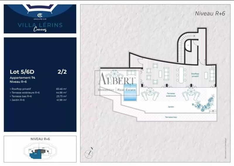 Just 5 minutes from the Palais des Festivals in a renovated residence. This sublime apartment type Villa on the roof with an area of 172 m² opening onto a terrace of 60 m² + upper level: rooftop 65 m² + terrace 70 m² + gardens 42 m² A huge kitchen living room of 55 m² 3 en-suite bedrooms with a sublime sea and California view, many possibilities for layout and parking. . available in December 2022 Unique product in Cannes contact us.