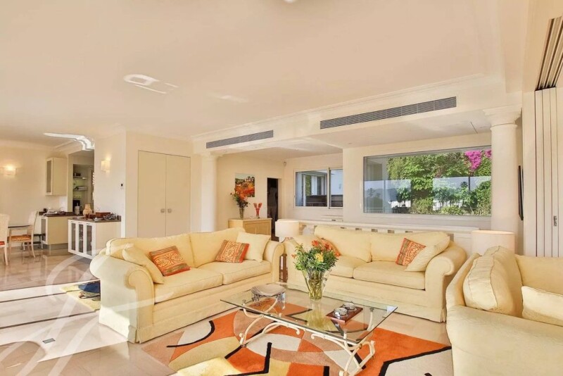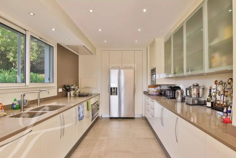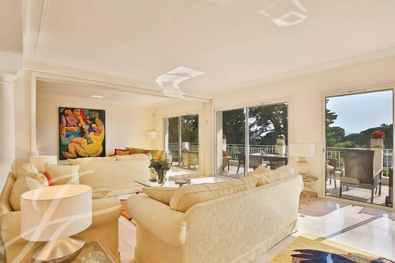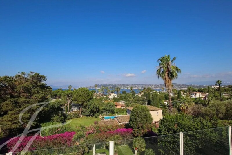 Very pretty modern villa on the western side of Cap d'Antibes, in a quiet cul-de-sac on Chemin des Nielles. Of a surface of 240 sqm on a ground sport of 1158 sqm. She is composed: -On the raised ground floor: Hall, living room, dining room, fitted kitchen, WC, bedroom with shower room, all opening onto terraces and a garden. -On the ground floor: Landing, a master bedroom, a bathroom and dressing room, three bedrooms, two shower rooms, a bathroom, a laundry room, all opening onto a large terrace. Access to the solarium roof via the terrace. Appendices: -At the swimming pool level: A kitchen, a shower room with WC, a storage room and the pool room. -Garages for two vehicles -Swimming pool.