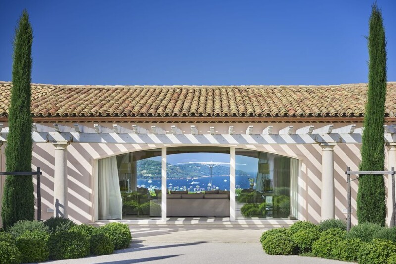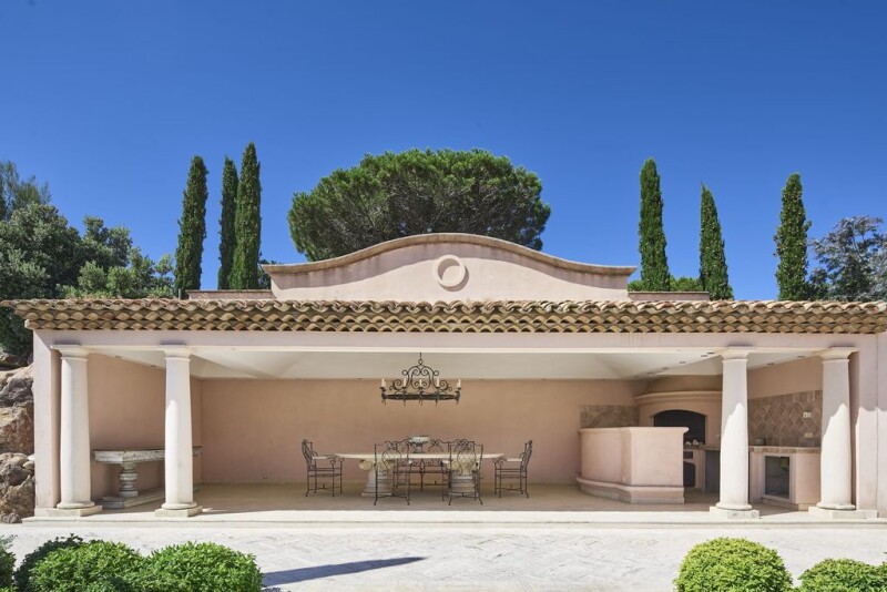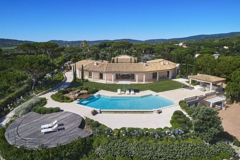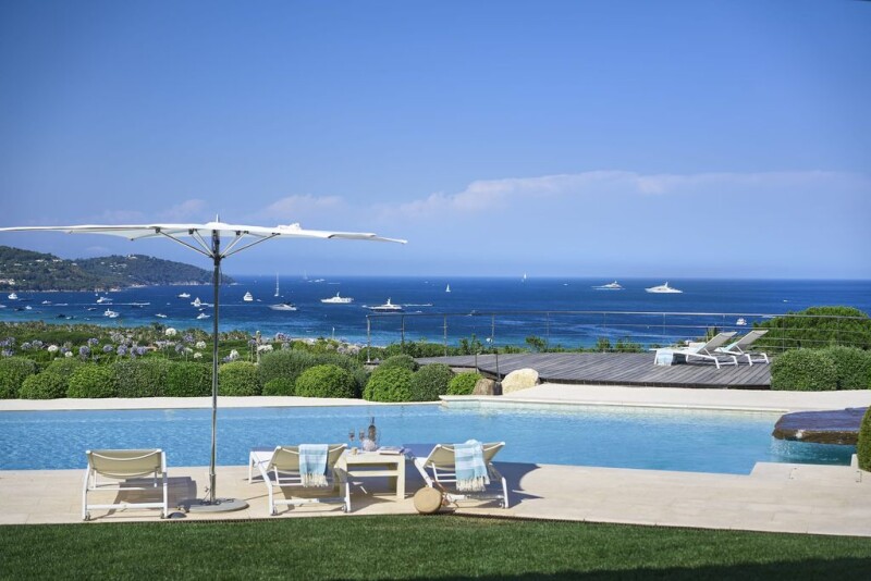 Luxury estate with panoramic sea views located in a private domain at walking distance to Pampelonne beach and Club 55. - Entrance hall - Large living room with sea view, fireplace, bay windows on each side with access to garden and pool on one side and courtyard on the other - TV room - Fully-equipped kitchen - Dining room, sea view, bay windows open up to the garden and pool - Master bedroom with en suite dressing room and bathroom - 5 en suite guest bedrooms - Laundry - Gym - Spa with Turkish bath - Storage room - Panic room - Garage - 25M swimming pool - Self-contained caretaker's apartment: Living room, kitchen, 1 ensuite bedroom.