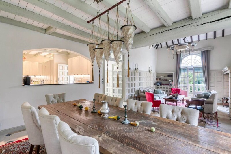 Sole Agent. This recently renovated mid 20th century property set in a leafy 3400 sqm plot offers about 455 sqm of living space. The near 215 sqm ground floor includes a dual-aspect entrance hall opening onto a terrace, a living/reception room and dining room featuring 6-metre high ceilings, a semi open-plan kitchen, and a master suite with a bathroom. The garden-level offers about 120 sqm of living space and includes a central family room opening onto a terrace and a heated swimming pool with a jacuzzi, four bedrooms, two bathrooms, a sauna, a dressing room, a storage room and utility room. The 120 sqm upper floor comprises a mezzanine with a bedroom and two convertible attics. With a fitted near 80 sqm separate annex, a workshop and two garages. The leafy garden commands a 180° view over the surrounding nature and a neighbouring equestrian property. The property is perfectly maintained and offers great rental potential. In a convenient location near Versailles, just 15 minutes from Pont des Sèvres, a 4-minute drive from the Franco-German School, and between 10 and 20 minutes from St Quentin en Yvelines, Vélizy-Villacoublay and Saclay.