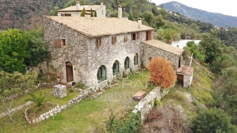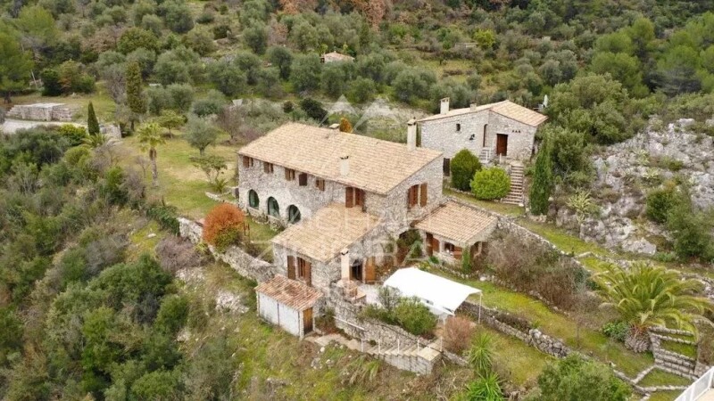 Just 30 minutes from Nice, discover this exceptional restored stone shepherd’s house of approx 270 sqm, nestled in a preserved natural setting. Set on more than 14.5 hectares of land, this unique property is a true haven of peace, adorned with over 200 olive trees, vines, and fruit trees, not to mention the oak and pine woods that add to its charm. The main living area is distinguished by its vaulted room, classified as a historic heritage site, offering an authentic and warm atmosphere. The flat, lush garden surrounding the shepherd’s house leads to a swimming pool with breathtaking panoramic views of the surrounding valley. The property enjoys optimal sunlight throughout the day, creating a bright and pleasant living environment. An independent stone guest house completes this rare property, perfect for welcoming family and friends. A borehole drilled on site provides a self-sufficient drinking water and irrigation system whatever the season. This shepherd’s house is the perfect opportunity for anyone seeking a peaceful retreat or a countryside project.