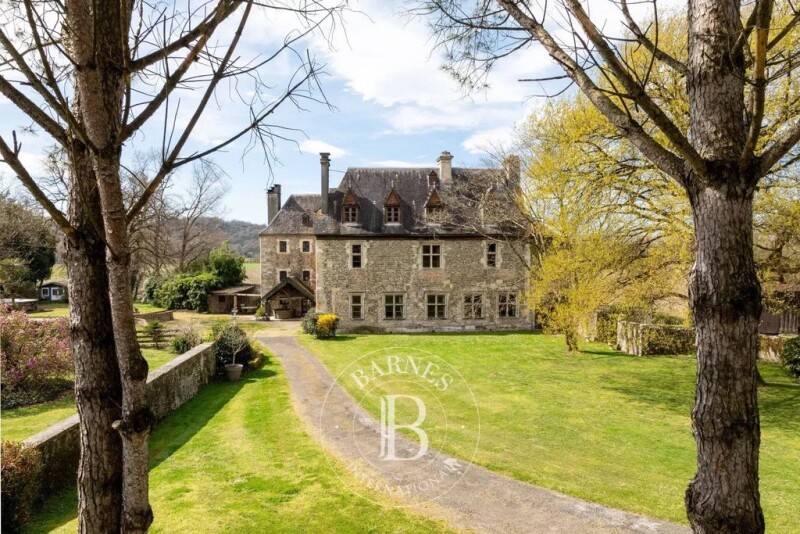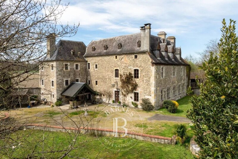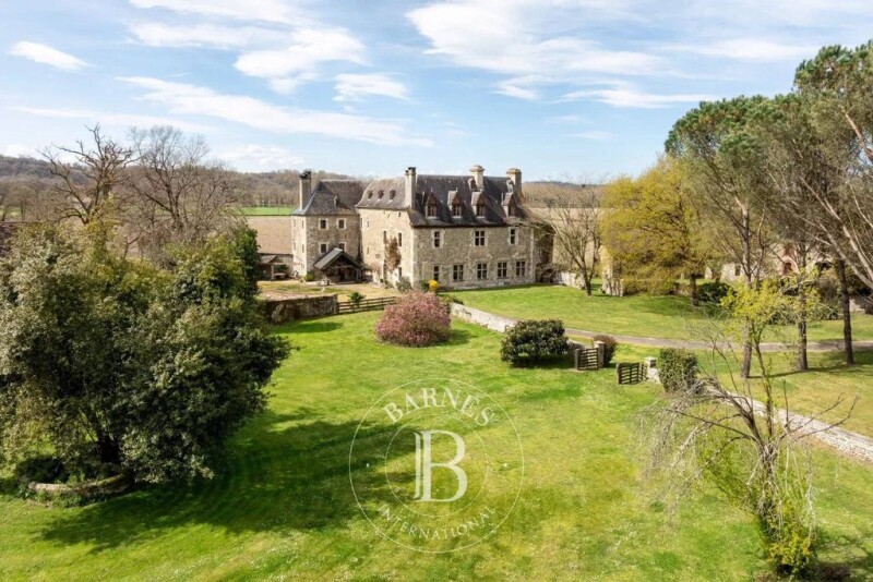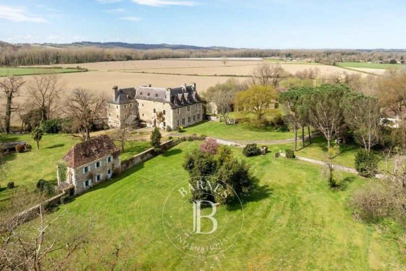 The chateau of approximately 534m² of living space sits in 6 acres of grounds and dates originally from the order of the templars but conserves many features of the renaissance period (mullioned windows and stone vaulted ceilings) and reception rooms from the early 19th century. This property has belonged to several illustrious Béarn families who also had links to the Louis XIV court but today allow interesting commercial potential for weddings,events and holiday rentals). The property includes a fortified farm (565m²), an orangery 221m², a 3 bed annex 125m2, an apartment (39m²), 2 guest houses of 78 and 96m², former stables (264m²) and a chicken coop. The main building features 23 rooms on 4 floors including an entrance hall, a country kitchen,3 drawing rooms, a dining room, a conservatory, 10 bedrooms and 4 shower/ bathrooms,a dressing room,a workshop,a washroom, a sunroom and a cellar. There are many original features such as sculpted stone, large century ceilings and marble fireplaces, doors, wood panelling and stone, parquet and terracotta floors. There is gaz central heating, additional wood stoves and 18 fireplaces. The 2 guest houses have kept their original charm with respectively 3 and 2 bedrooms and can be rented out or kept for friends and family. The 3 bed house is currently used as a successful holiday rental. The outbuildings and orangery can readily be converted and the 3 bed annex requires renovation as this was used previously as accommodation. The extensive grounds and woodland contain many century old trees and plants including magnolias,chestnut,oak, fruit trees,wisteria,hydrangeas and climbing roses are accessed by a long private road leading to the entrance gates. There are no neighbours and the surrounding area is peaceful. 12 minutes drive to the center of Orthez with all shops available,TGV train station with direct links to Paris, motorway access and 25 minutes drive to Pau and 50 minutes to the Basque coast. Ski slopes and Spain 80 minutes drive. With its numerous commercial possibilities and space for a large family and guest accommodation, this historical property lends itself to create a wonderful project or family home near the Pyrenees, the Atlantic ocean and nearby Spain. État des risques et pollution: réalisé (null).