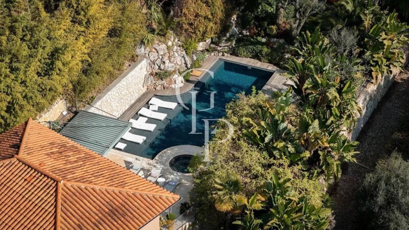 Perched in Villefranche-sur-Mer, this sumptuous villa offers breathtaking panoramic views over Saint-Jean-Cap-Ferrat and the sparkling waters of the Mediterranean. Designed over five levels, all served by a private lift, it combines elegance, comfort and top-of-the-range features. As soon as you enter, you are greeted by a spacious garage and a majestic entrance hall, with separate access for easy parking for three vehicles. The first level provides an ideal self-contained space, including an office and a studio with living room, open-plan kitchen and two bedrooms. On the second level, the focus is on well-being, with a spa, hammam, balneotherapy bath and fully-equipped gym. A staff annexe with lounge, kitchen and bedroom completes this level. The third floor features a sumptuous master suite with a double dressing room and private terrace. Three further en suite bedrooms also benefit from a terrace offering uninterrupted sea views. The fourth level boasts a vast 90 m² living room, dining room and kitchen that can be closed off as required. An additional space with two bedrooms and a shower room completes this floor. Finally, at the top, the fifth level houses a 50 m² living room, a veritable jewel case suspended over the horizon, offering an unforgettable view of the Mediterranean. Outside, a landscaped garden sublimates the property, with a magnificent swimming pool and jacuzzi where you can savour every moment, lulled by the beauty of the landscape. This exceptional villa, where luxury meets tranquillity, is an invitation to the art of living on the Côte d'Azur. --- Estimated annual energy costs for standard use: between €5,703 and €7,715 per year. Average energy prices indexed to 2021. Information on the risks to which this property is exposed is available on the Géorisques website: georisques.gouv.fr État des risques et pollution: non applicable (null).