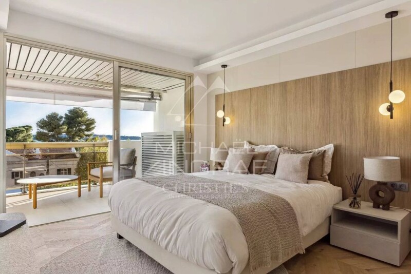 Luxurious 4-room apartment fully renovated with a total surface area of 100m2, located in a residence with swimming pool, in the heart of the exclusive Palm Beach district. It is composed of a spacious living room, a fully equipped kitchen and three en suite bedrooms, each with its own bathroom. You'll be charmed by the superb 20m2 terrace, offering breathtaking sea views. The apartment is sold furnished, with a cellar and two parking spaces.