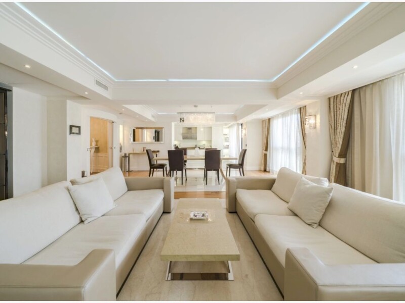 Penthouse. Hotel Carlton. Cannes near the Croisette. Right in the center of Cannes, a few steps from the world-famous Croisette, where the film festival takes place every year, the luxury penthouse is spread over an area of 220 square meters and is located a few meters away from the Carlton hotel. The luxurious residence with concierge that hosts it due to its proximity to the Carlton Hotel, will have direct access to the new wellness center, gym and other 5-star hotel amenities. Located on the sixth and last floor of the building, the spaces are distributed between a large living room and dining room, fully equipped American kitchen, three double bedrooms with bathroom, guest service and four terraces of 20 square meters each with views of both sides of the residence. Two garages and a cellar. A car park owned. Air conditioning, double glazed windows, internet connection system, electric shutters, elevator, volumetric and perimeter alarm system, security service personnel, concierge and concierge. The apartment is completely furnished as in photographs and has been exclusively managed by Fendi. Each piece of furniture is Fendi labeled. The complex currently in definition of works is a very high level complex with every service available. Property owned by Monegasque SCI. You can sell either just the property or the shares of that company. Annual condominium expenses including concierge, heating, water and all services valued at about 12,000.00 euros. Annual tax foncier € 3000.00. Annual housing tax euro 4200.00.