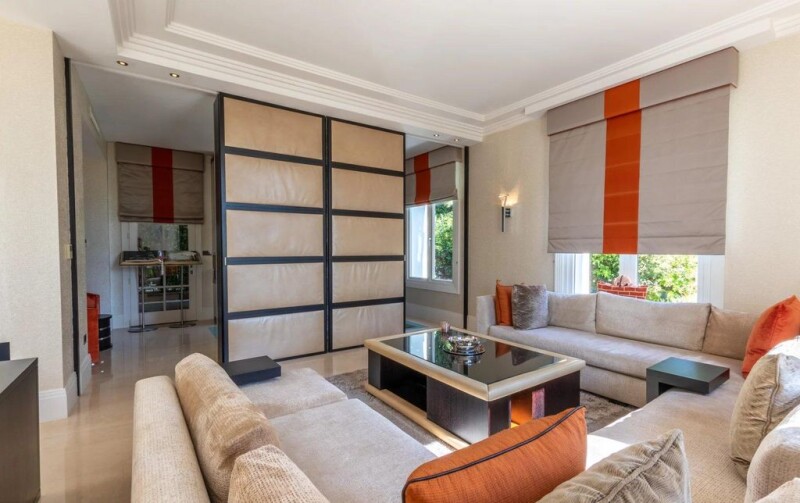 Very beautiful property dating from the 1900s, completely renovated mixing neo-Moorish architecture with contemporary style. It is located near Port Gallice and within walking distance of the fine sandy beaches of Juan les Pins. It offers approximately 420m2 of living space on 1308m2 land with a 15-meter infinity pool including a fountain and jet spa. The kitchen was designed by Nicholas Anthony of Knightsbridge and is fitted with Poggenpohl units with electrically operated drawers and remote controlled color changing panels and Gaggenau appliances. The dining room, adjacent to the kitchen, has a dining table which can be lowered to be used as a coffee table. The living room consists of a television area, fireplace area and a desk. Master bedroom of approximately 100m2 with balcony and sea view, living room, dressing room and luxurious bathroom. Three large en-suite bedrooms on the garden floor. Double garage and parking spaces for four vehicles.