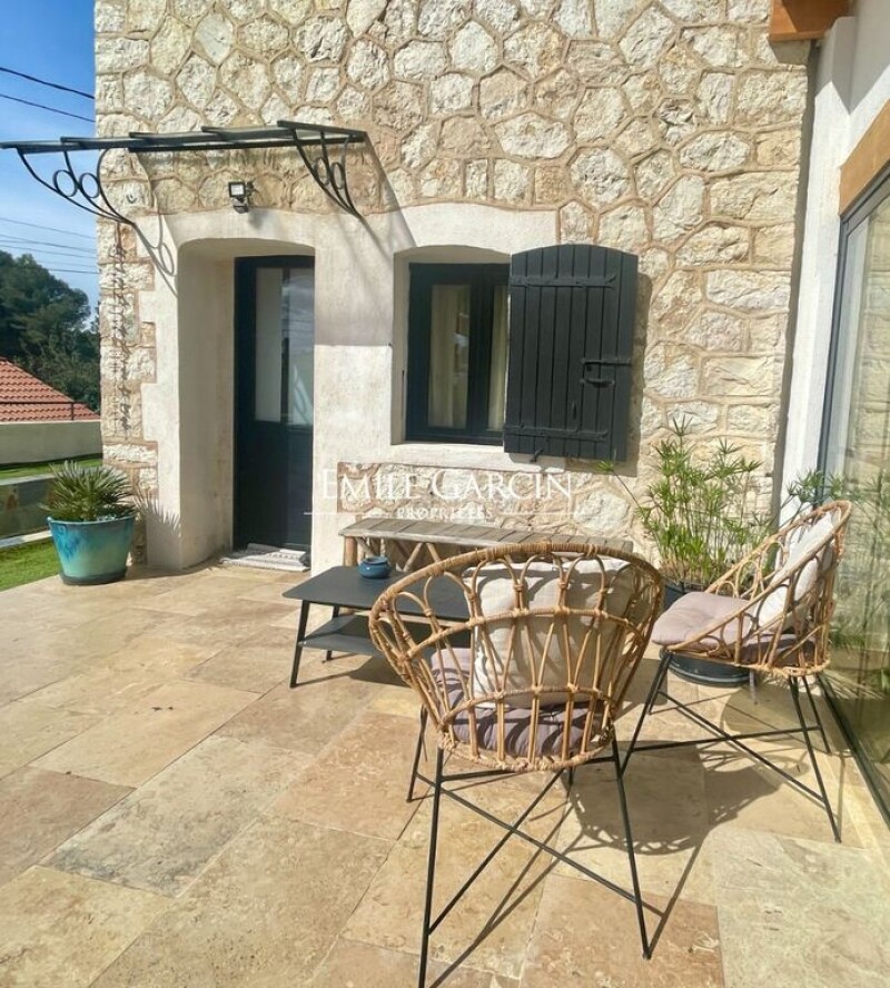 Peacefully located in the upper reaches of L'Estaque, this 19th-century house has been extended and updated but retains its stone facade. Presenting approximately 140 sq.m of living area, it features a wide main entrance leading to a south-facing living room with sea views, a fully equipped kitchen and a dining room with large windows. A metal staircase adds a contemporary touch to the house. On the first floor, you will find the master bedroom with its breathtaking view of Marseille harbour, as well as an open space that could be used as a guest bedroom, a home office or a games room. This floor also features a fully equipped studio with its own entrance, which could easily be converted into two bedrooms. Lastly, the converted attic offers a final bedroom equipped with storage space. Outside, there is a beautiful garden of over 900 sq.m split between two levels. Outdoor facilities include a swimming pool, a terrace, a BBQ area, a pétanque area and a triple carport.