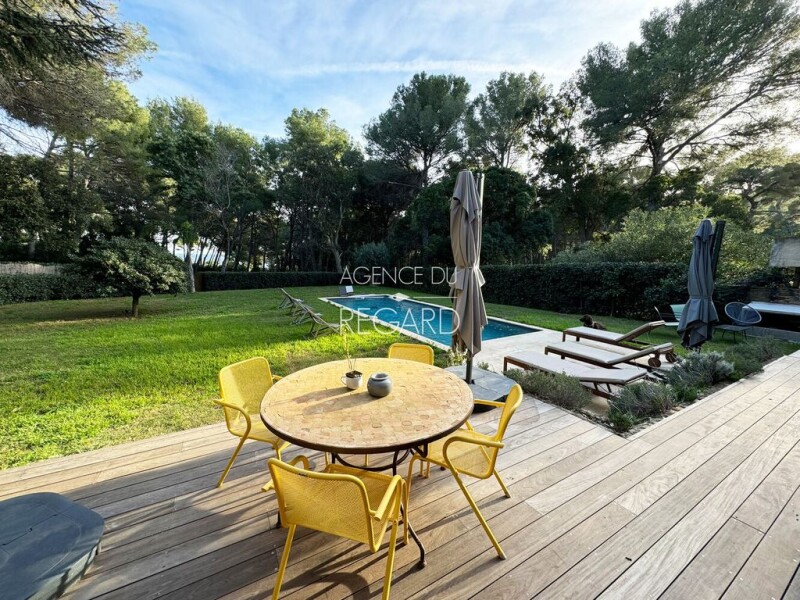 THIS PROPERTY IS UNDER PURCHASE OFFER BY L'AGENCE DU REGARD... Property in Gaou Bénat, just few steps from the sea... Bormes-les-Mimosas, in the private domain of Gaou Bénat, this property of 1,110sqm is only 150 meters from the beach. Its land is flat, quiet and benefits from the sea view. Villa of 126sqm, on one level, completely renovated in 2022 and housing 5 bedrooms in total. Swimming pool 3.5x10m. 2 garages. DPE: B GES: A ADR1347 3.5% fees charged to the buyer (120 000€ tax included), € 3,370,000 net seller Information on the risks to which this property is exposed is available on the géorisks website: www.georisques.gouv.fr.