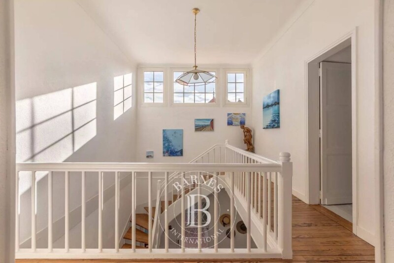 The BARNES Arcachon agency presents this magnificent front-line villa offering a panoramic view of the Basin and private access to the beach. Its ideal location close to shops, the market beach and Arcachon train station makes it an exceptional residence. This 10-room residence extends over approximately 250 m² spread over two levels. On the ground floor, discover an elegant and bright entrance, a spacious living room offering a breathtaking view of the sea, an independent kitchen with adjoining laundry room, three bedrooms with bathrooms and an office. Upstairs, the landing leads to four additional bedrooms, a large bathroom, and a second living room offering a unique perspective on the Basin. The enclosed plot of approximately 700 m² offers parking space, a double garage of 40 m², as well as a charming garden facing the Basin. Modern equipment such as double glazing, electric roller shutters, electric gate, drilled well and automatic watering system add a touch of comfort and practicality to this exceptional property.