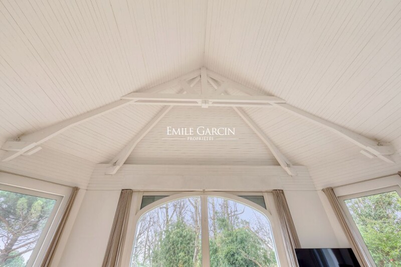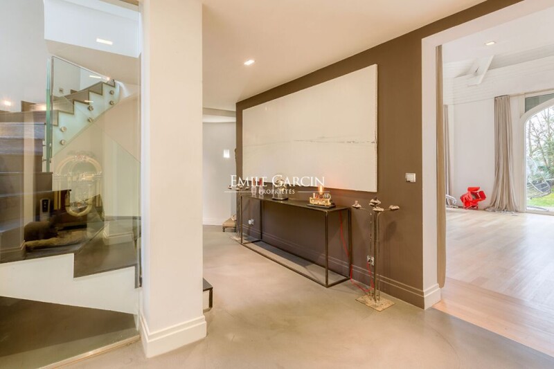 Magnificent landscaped property with swimming pool in Garches, near the Saint Cloud golf course. As soon as you enter this exceptional property in its sought-after residential area, you will be immersed in 1100 sq.m of greenery perfectly isolated from the outside world and fully renovated by landscapers. A large heated swimming pool surrounded by wooden decking and lush greenery makes it a unique oasis of calm. This spacious property is bathed in sun and light. It is composed of a contemporary designer villa of 507 sq.m spread over two floors plus a basement annex of 170 sq.m. Full of charm and character, and in perfect condition, it also presents a renovated independent studio of 17 sq.m, several terraces overlooking the garden, and an outdoor heated swimming pool. On the ground floor: an entrance gallery provides access to a 64 sq.m living room with fireplace and a majestic cathedral roof, backing onto one of the garden terraces through two large windows. A large kitchen-diner backs onto a second terrace. A small living room/boudoir with fireplace also backs onto the garden. A 14-sq.m bedroom with private bathroom and toilet. Guest WC. Two magnificent staircases provide access to the upper floors. There is also an elevator serving each level. On the first floor: two suites with independent terraces, one with a huge dressing room, a private bathroom and toilet, and the second with a shower room and toilet. On the second floor: two bedrooms with mezzanine areas, independent terraces, shower room, bathroom and toilet. On the lower level: a 36-sq.m home cinema, fully equipped and opening onto the swimming pool and garden. Also a hammam, a bathroom and toilet, numerous storage spaces, a laundry room, technical rooms and two cellars. Additional facilities include a garage that can accommodate up to 8 vehicles. Near the swimming pool, you will find a fully renovated independent service studio of 17 sq.m, accessible from the garden.