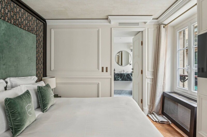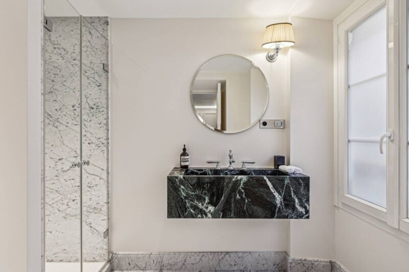 Paris 2nd – Place des Victoires. Exclusive. Just a stone's throw from the prestigious Place des Victoires and the Palais Royal gardens, within a magnificent old building, discover this superb three-room apartment, entirely renovated by an architect with high-end materials. Located on the 1st floor overlooking the courtyard, this 80.92 m² setting offers absolute calm. It consists of a spacious living room with an open-plan fitted and equipped kitchen, as well as a hallway leading to the sleeping area. This includes a first bedroom with a shower room and WC, as well as a second bedroom with its own shower room and WC. The remarkable quality of its renovation, combining old-world charm with modern comfort, makes it an exceptional pied-à-terre.