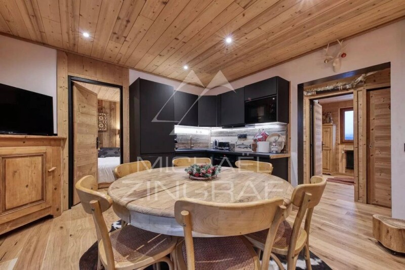 Michaël Zingraf Real Estate Megève is pleased to present you this carefully renovated apartment in a mountain style, and ideally located a few minutes' walk from the center of the village. Many assets for this 53,49 Sqm (Carrez law) property: its location which allows to forget the car, its small condominium which enjoys a certain calm, its exposure which allows it to benefit from a beautiful luminosity as well as an unobstructed view. Recently renovated, this apartment offers three bedrooms, a bathroom and a shower room, an open kitchen and a very pleasant south-facing living room opening onto a balcony. An outside parking space (not allocated), a collective ski-room and a private cellar complete this property. Condominium of 14 lots.