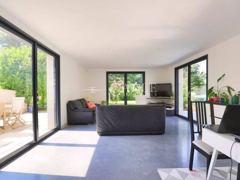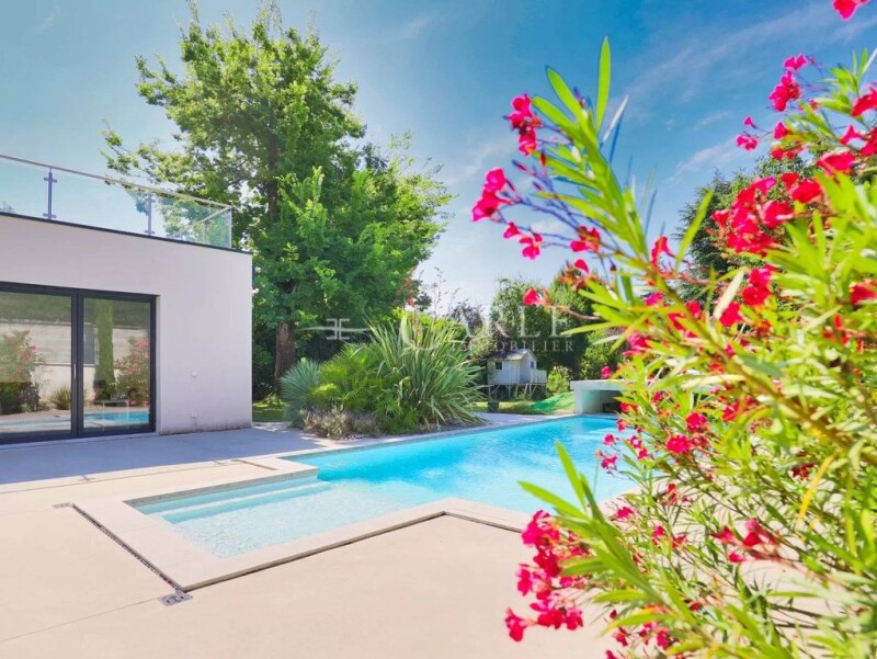 Discover this exquisite villa in the charming town of Genas, France. Spanning an impressive 192 m², this home offers five spacious bedrooms and a total of ten elegantly designed rooms. The villa seamlessly combines style and convenience with features like double glazing, aluminum windows, and sliding doors, ensuring comfort and energy efficiency. The property is a tech-savvy dream, equipped with high-speed internet, optical fiber, and electric shutters. Safety and privacy are prioritized with a secure electric gate, videophone, and comprehensive outdoor lighting. You'll appreciate the beautifully fenced surroundings that provide a serene and private environment for relaxation and entertaining. Outdoor living is elevated by the stunning swimming pool, perfect for leisurely swims and hosting gatherings. Whether enjoying a quiet evening or entertaining guests, this villa offers the ideal backdrop for a luxurious lifestyle in the picturesque setting of Genas. État des risques et pollution: réalisé (2023-05-25).