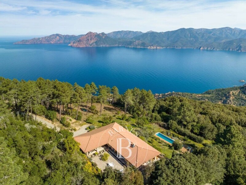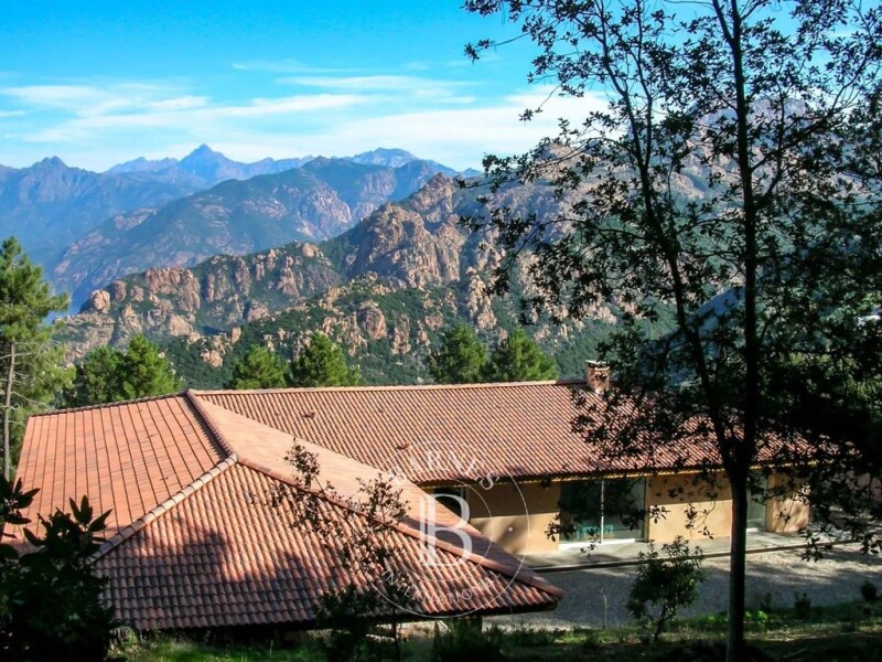 RV1370 - Piana Charming property, nestled in the heart of a remarkable site, with a breathtaking view of the Gulf of Porto and the village of Piana. The property consists of a contemporary villa of approximately 2,476 sq.ft with a large living room, relaxation area, dining room open onto a covered terrace, a fully equipped kitchen. 3 bedrooms with private shower room, including a master suite with Italian shower and access to the terrace. A flat with a living room, American kitchen, a bedroom, a shower room and a large workshop complete the property. Parking and carport. The villa is built on a landscaped garden of about 44,078 sq.ft, bordered by Mediterranean species, a citrus orchard and a swimming pool area with a long swimming corridor. In a quiet and preserved environment, close to exceptional sites such as the calanques of Piana, Porto, Scandola, the beach of Arone. Fees to be paid by the seller. État des risques et pollution: réalisé (null).
