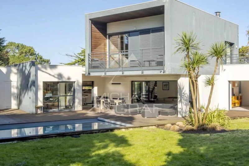 EXCLUSIVITY Michaël Zingraf Real Estate Biarritz presents this magnificent architect-designed house located in one of the most sought-after areas of Anglet, just a few metres from the beaches. Built in 2015, this exceptional property offers a peaceful and elegant living environment. It boasts generous living space, top-of-the-range features and an optimised layout for absolute comfort. As soon as you enter, you'll be struck by the size and lightness of this home. The interior has been designed to maximise space and flow, with particularly spacious living areas. The vast living room, the heart of the home, is bathed in light. Its modern, uncluttered design creates a warm, welcoming atmosphere. The room opens onto a landscaped garden with a swimming pool. The villa has four bedrooms, each with its own en-suite bathroom, offering optimum comfort and total independence for each member of the family. The particularly spacious master suite is a real cocoon, with a dressing room and a luxurious bathroom equipped with the very best amenities. One of the special features is the room dedicated to the golf simulator, a rare and unique piece of equipment, perfect for golf enthusiasts. All the facilities are up to the highest standards: lift, underfloor heating, security system and double garage. Discover this true favourite for lovers of the sea, contemporary architecture and top-of-the-range living. An exceptional property waiting to be discovered.
