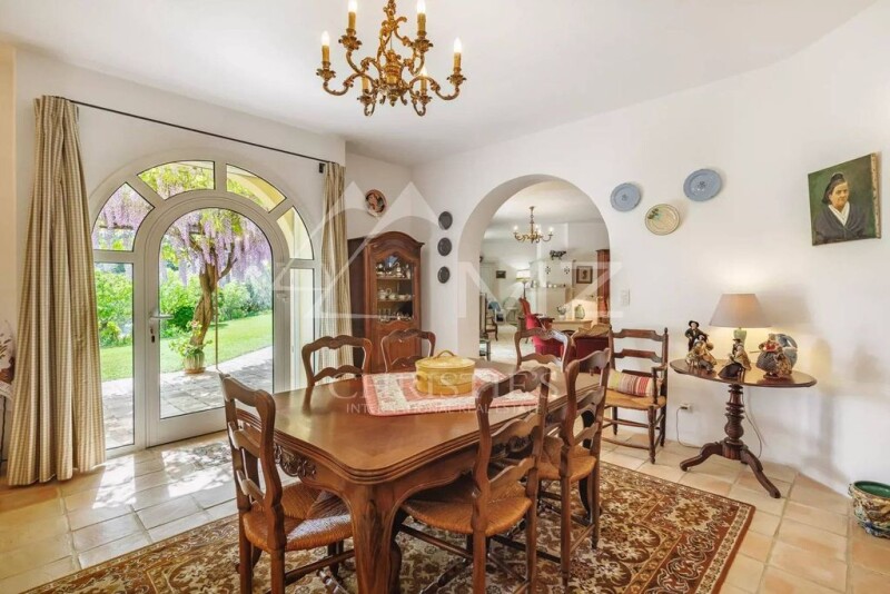 Ideally situated on the heights of a sought after area of Saint-Rémy-de-Provence, this delightful Provencal house enjoys absolute peace and quiet on the edge of an unspoilt nature reserve. Built in 2000, it enjoys panoramic views over the Alpilles. The light-filled living rooms open onto shady, flower-filled terraces. The garden, decorated with flowers and Provencal plants, surrounds a large mosaic swimming pool. A large double garage and pool house complete the property. État des risques et pollution: réalisé (null).
