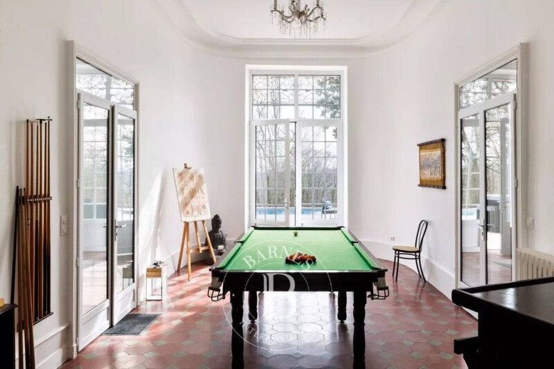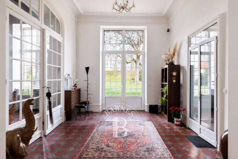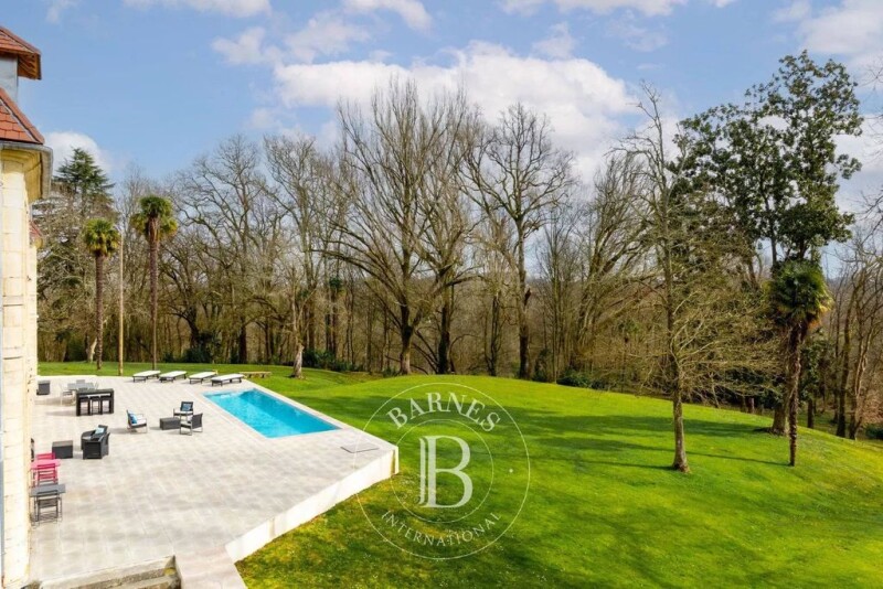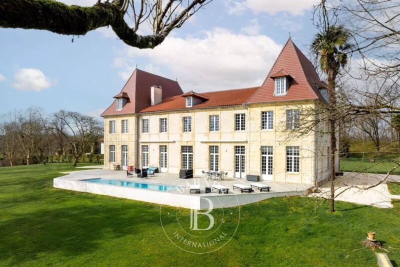 This magnificent 18th-century estate of 650 m² has undergone a complete renovation, completed in 2024, and benefits from excellent energy performance. The architecture is elegant, the spaces are harmonious, and the rooms are filled with natural light. No further work is required. Perched in a dominant position above the surrounding terrain, the property offers unobstructed views over the surrounding countryside. The château consists of 21 rooms spread over two levels. The ground floor includes, in its central part and right wing, an entrance hall, a billiard room, several reception rooms, a grand staircase leading to the upper floor, an office, a spacious kitchen, a pantry, technical rooms, and hallways. The left wing is dedicated to a private living area with a lounge, a dining room/kitchen, a master suite, and a small independent two-room apartment. Upstairs, a 25-meter corridor leads to an office, a lounge/library, four en-suite bedrooms, two additional bedrooms, a laundry room, a wellness area, a shower room, and a WC. A vast attic under the roof houses all the technical equipment necessary for the estate’s operation. Outside, a swimming pool is integrated into the château’s large terrace. A separate outbuilding, currently used as a workshop, could be converted into living space if desired. A wine cellar is located beneath the second terrace. The 5-hectare park is landscaped and wooded. The estate is ideally located, just 15 minutes from the TGV station in Dax, 40 minutes from Biarritz Airport, and 25 minutes from the Atlantic beaches.