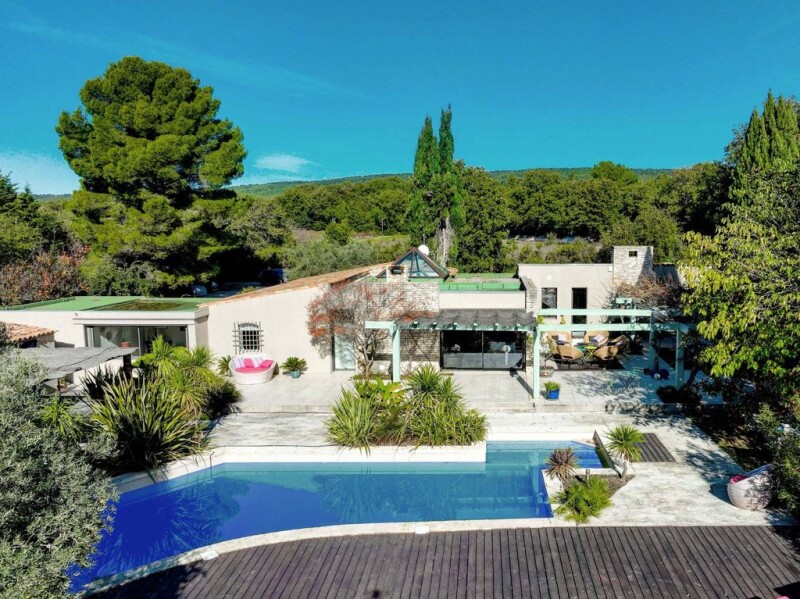 Co-exclusive – A rare opportunity on the market! Discover this 320 m² single storey villa, ideally nestled in the heart of a tree-filled park of approximately 8,760 m² in Puyricard. Located in a quiet, private setting, close to the village and its amenities, this property is surrounded by vineyards and lavender fields, just 10 minutes from the center of Aix-en-Provence. Designed for optimal comfort, the home is distinguished by its exceptional brightness and spacious rooms. It opens onto an inviting entrance hall, a large living room with a fireplace and skylight, a spacious fully equipped kitchen, and includes a total of 6 bedrooms, including 2 suites and a master suite with fireplace, dressing room, bathroom with tub and shower, and a large adjoining office. The villa also features 4 bathrooms, a laundry room, and two cellars, one of which has an industrial cold room. Two fully equipped independent studios allow for hosting family and friends in complete privacy. Outside, enjoy a true relaxation and entertainment area: a large terrace of over 350 m², an illuminated landscaped pool, a summer kitchen with bar and changing room, a lighted pétanque court, an integrated barbecue, and even a Balinese bed. The beautifully landscaped grounds are filled with lush vegetation, with varieties such as banana trees, trumpet vines, olive trees, laurels, magnolias, and almond trees, creating an enchanting setting. A unique opportunity to acquire an exceptional property, ideal for those seeking comfort, tranquility, and conviviality in one of the most sought-after areas of the region. Mandate 1250 - Contact : Sophie AUBERT - +33780953020 - s.aubert@aixenprovence-sothebysrealty.com - Aix-en-Provence Sotheby’s International Realty, the reference in luxury real estate in Aix-en-Provence.