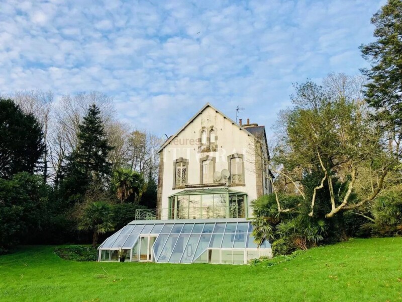 Demeures du littoral offers you a Manor on the water's edge, built in 1880 on a park of more than 2.7 hectares. This place with an exceptional environment, protected from the wind and from view, offers a breathtaking view of the sea. Private access to the sea, the possibility of having a boat in front of your property, the 1900 atmosphere are some of the assets it has. The manor is built on 4 levels: - On the ground floor, you will find a double entrance, a dining room with fireplace, a very large living room opening onto a glass roof facing the park with a view of Elorn. On this level there is a fitted kitchen and toilets. - On the first floor, the landing serves four bedrooms including a suite with private bathroom. In addition on this level, separate toilets and a bathroom. - On the second floor, four small bedrooms, a large office/library with breathtaking views of Brest harbor. A toilet is added to this level and there is access to the attic. - On the garden level, two spaces: - A workshop and cellars. - A wellness area with a large swimming pool, a jacuzzi, a shower, toilets, a changing area. In the park there are 4 other important buildings: - A double garage in the direct vicinity of the manor. - A completely glazed orangery to the south. - A caretaker's house at the entrance to the property. - A house which was formerly the stables of the manor and which is used as a workshop. All of these outbuildings can be converted and add approximately 250m² of additional living space. A renovation is to be considered to take full advantage of the property. The place is quiet but not isolated, just 10 minutes from shops and 20 minutes by car from Brest city center. Come visit this unique place in Finistère. All information by email to arthur@demeuresdulittoral.com or by telephone at 06 64 11 26 36 Arthur Coastal residences État des risques et pollution: réalisé (null).