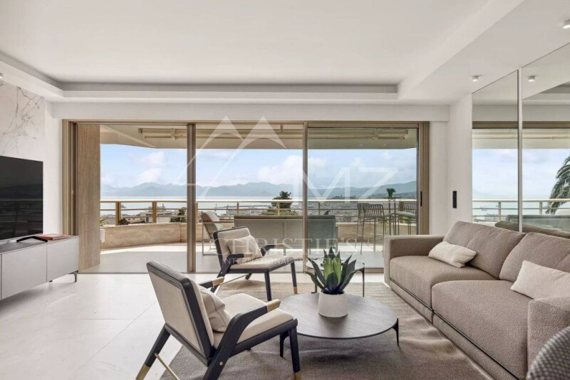 Are you looking for a prestigious residence with a caretaker, indoor pool, park, and located in the Californie neighborhood? We have the perfect apartment for you: a stunning 90.98 sqm Carrez law apartment with breathtaking panoramic sea views. This property consists of two bedrooms, one with a private balcony, two bathrooms, a 28 sqm south-facing terrace, and a 40 sqm living room with a large bay window offering plenty of natural light. The kitchen is open, modern, and equipped with high-quality materials. This contemporary apartment is perfect for architecture and design enthusiasts. You can enjoy moments of relaxation in the residence's indoor pool, take walks in the landscaped park, and benefit from the security provided by the caretaker. One private underground parking space and a cellar are included in this offer. Please don't hesitate to contact us for more information or to arrange a visit.