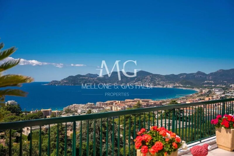 In a privileged area of the Croix des Gardes and within a prestigious residence with caretaker, swimming pool, tennis court and landscaped park, magnificent Penthouse / T4 with an area of 180 m² opening onto a terrace of approximately 200 m² and enjoying a breathtaking view of the Estérel, the Bay of Cannes and the Lérins Islands up to the hills of California. The apartment is composed of an entrance hall, a large living room with a very beautiful open fitted kitchen, an en-suite master bedroom with dressing room and an adjoining bathroom, a second bedroom with its adjoining bathroom, an office and/or bedroom, an additional independent bedroom with its bathroom and balcony. Two large closed garages as well as three cellars complete this exceptional property.
