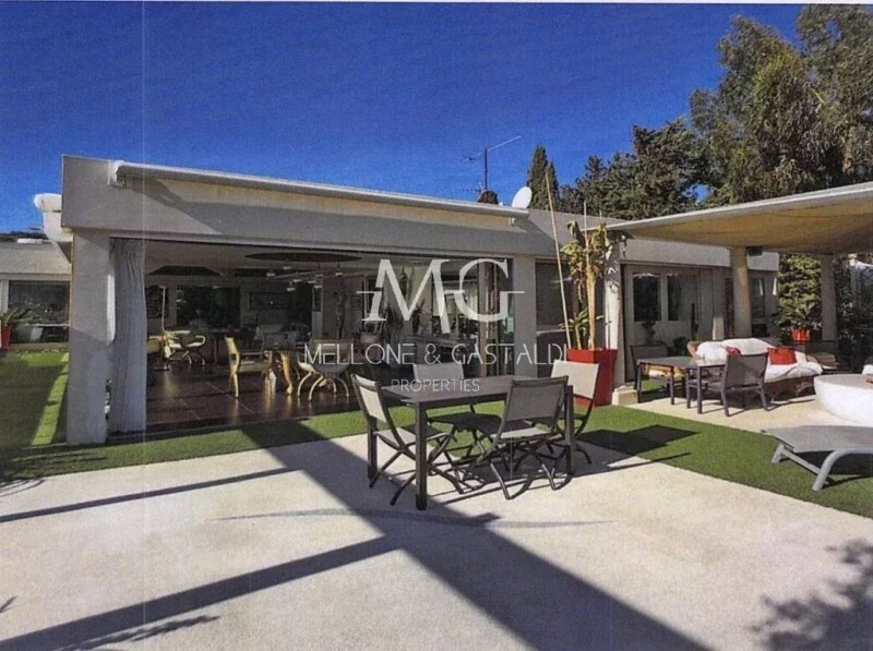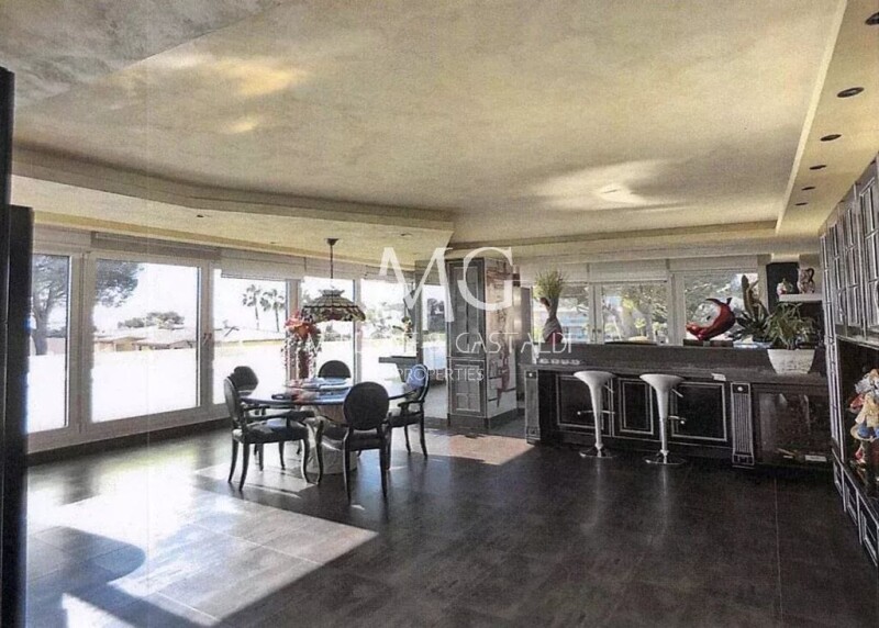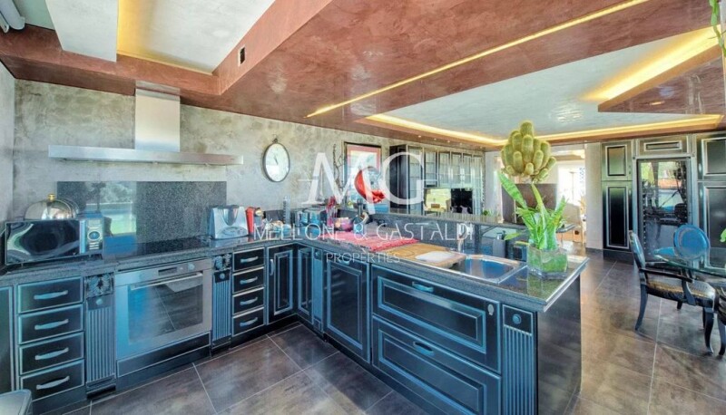 Penthouse / Villa on the roof of 217 m² in a small luxury residence with swimming pool. Terrace of almost 130 m² with jacuzzi, sea view on the Lérins islands. Ideally located at the bottom of the Croix des Gardes on the Cannes side (06400) close to amenities just 1km from the Forville Market. - Alone on the 3rd and last floor - Entrance with direct elevator in the apartment - Vast living-dining room of 100 m² - Very large American kitchen of 45 m² with dining area - Master bedroom with bathroom, shower, wc and dressing room - Bedroom with Italian shower and wc - Office / Bedroom with Italian shower room and wc - Linen / Laundry room - Large garage with electric door - 2 outdoor car parks, one of which is covered - Possibility of additional closed garage for rent (65€/month) - Cellar - Swimming pool in the residence.