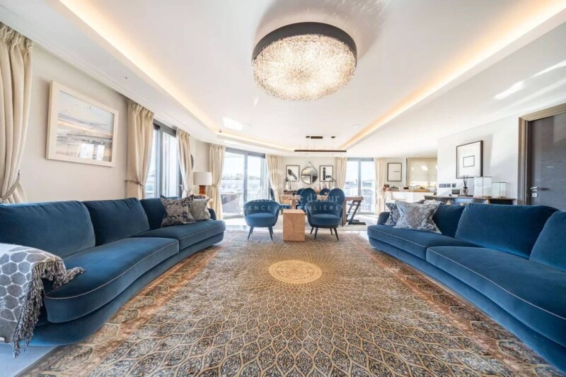 Located on the West side of Cap d'Antibes in one of the most popular residences, this apartment with a living area of approximately 180 m2 comprising: a living room with hall and kitchen area, four bedrooms including one with dressing room, bathroom/shower/WC, one with cupboard and bathroom/shower/WC and two with cupboard, shower room/WC, three hallways including two with cupboards, a terrace with stairs leading to the roof. On the roof: the exclusive and perpetual enjoyment of a terrace offering a panoramic sea view on the East/West side with planters, swimming pool, a staircase coming from the R+4. A cellar and double parking complete this lot.