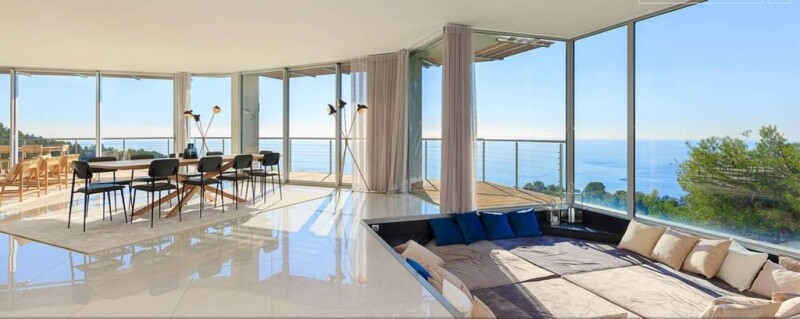 A stone's throw from the Principality of Monaco, in one of the most renowned destinations on the Côte d'Azur, this luxurious villa with a contemporary design is for sale on the beautiful promontory of Roquebrune-Cap-Martin. Always an exclusive location, appreciated by the most influential personalities of international fame, first of all Princess Grace of Monaco, who loved to spend pleasant relaxing breaks here, Cap-Martin is a picturesque medieval village that rises sheer to the sea, immersed in a natural oasis with typical Mediterranean vegetation. Dominating this fairytale setting, in a suggestive panoramic position with a splendid sea view, the villa is imposing and majestic in its 950 square meters, spread over four floors. Fascinating and functional at the same time, thanks to the most modern technology at the service of design, the residence is characterized by large windows that recur on all three main levels, so much so that in every internal environment the feeling of proximity to the sea is so intense. to touch it. The perfect alternation of light tones in the choice of materials, from the wooden elements to the pure white of the structure, in which also light stone coverings are inserted, creates a harmonious play of contrasts with the intense green of the cirondaroio. Finely restored in recent times according to the most advanced construction techniques, with particular attention to luxury details and fine furnishings, the residence houses a total of five comfortable bedrooms and six bathrooms. There is no shortage of large rooms designed to share the most pleasant moments of leisure, with a large open space living room extraordinarily bright, thanks also to the perfect exposure. The show continues in the large terraces that serve the various floors and in the exclusive panoramic rooftop on the roof of the house, 300 square meters dedicated to absolute relaxation with Inifinity Pool and a splendid solarium area. Privacy and tranquility are guaranteed by a large green space that surrounds the residence with its 6,375 square meters, a vast wooded area which also includes the enchanting perfectly maintained park of 1,500 square meters, ideal for creating a second swimming pool.