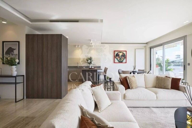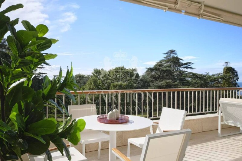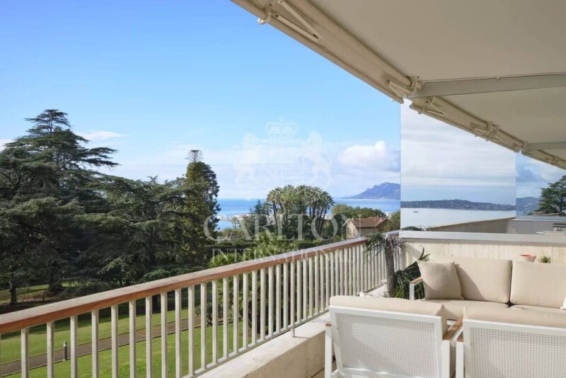 Located in one of the most prestigious residences in Cannes, California, this elegant 3-room apartment spans approximately 95m² and has been fully renovated with premium finishes. It offers stunning views of the park and the sea. The apartment features a spacious living room with an open-plan, fully equipped kitchen leading to a large, furnished terrace. There are two en-suite bedrooms, each with its bathroom, toilet, and dressing room. This ultra-secure residence provides 24/7 security, a concierge, a park, a swimming pool, a golf driving range, tennis courts, and a private shuttle service for residents to the city center. A garage is available for purchase. Large storage room included with the apartment. Just a 5-minute drive from the beaches and downtown Cannes. Ref: 00174 Energy Performance Certificate (EPC): (D) 207 / (D) 44 Number of units in the residence: 260 No ongoing legal procedures affecting the residence. Average energy costs in 2021: €1,112 - €1,504 Agency fees are at the expense of the seller. Information regarding the risks associated with this property can be found on the following website: État des risques et pollution: réalisé (2024-04-12).
