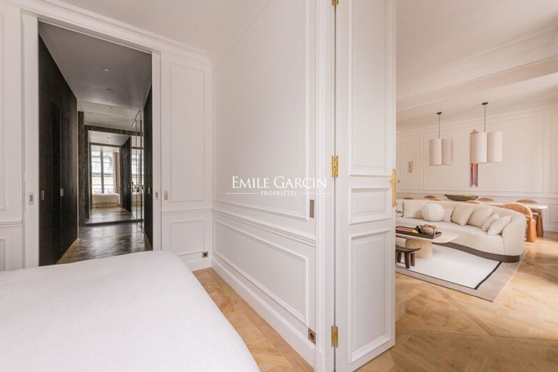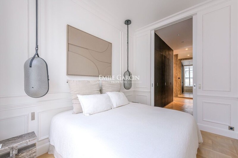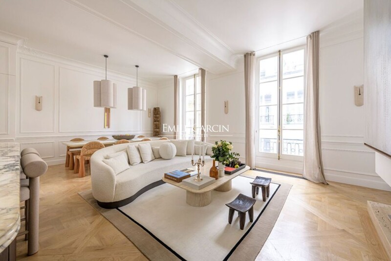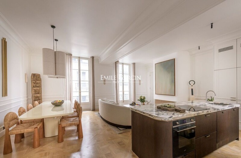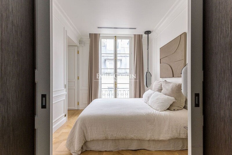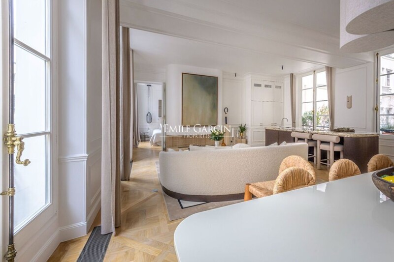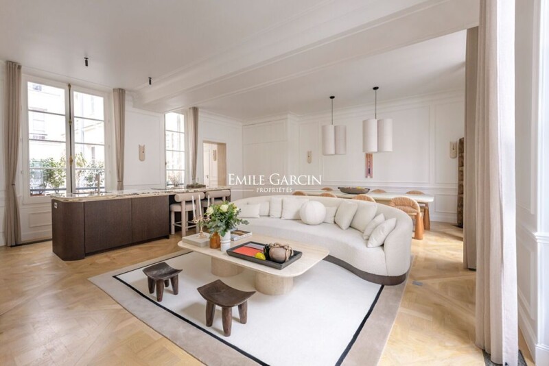 Located on the third floor of a period building, this exceptional apartment presents a living area of ??77.53 sq.m (Carrez law). This timeless property has undergone a contemporary renovation, carried out with meticulous attention to detail using exceptional materials. Featuring elegant woodwork, solid oak parquet flooring and moldings, this air-conditioned apartment offers the perfect blend of old-world charm and modernity. It also stands out for its ceiling height of 3.4m and its welcoming feel. The double living room of 50 sq.m, equipped with fireplace and fitted open kitchen, provides a warm and sophisticated living area. The master suite has a custom-made dressing room and a bathroom with an impeccable finish. Additional facilities include a guest WC and several concealed storage spaces. Sold with a cellar. Option to purchase a parking space nearby. Peaceful. A rare find. Condominiums of 36 units (No proceedings in progress). Annual expenses : 1792 euros.