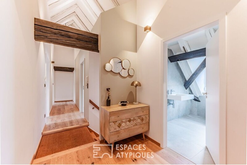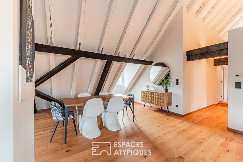 This 112 m² flat (176 m² on the ground) is the result of a high-quality renovation of former attic space. Its generous volumes are nestled on the 3rd floor, under the exposed roof timbers of a building dating from 1800, in the heart of the Krutenau district and its many amenities. Enhanced by the conservation of the original beams, the living area offers a very comfortable height under the ridge. It includes an open-plan kitchen, a dining area and a sitting area. A corridor leads to the sleeping area, which begins with a vast bathroom with shower and bath in refined tones, followed by the first bedroom and its dressing room. Two further bedrooms, linked by a shower room, complete the features of this character property. Its location in the heart of a sought-after district just a short walk from the city centre makes this a rare flat that will appeal to lovers of old-world charm and authentic materials. ENERGY CLASS: C/ CLIMATE CLASS: A Estimated average annual energy costs for standard use, based on 2021 energy prices: between euros1190 and euros1660. Contact: Déborah 06.12.39.68.66 Condominiums of 7 units (No proceedings in progress). Annual expenses : 2180 euros.