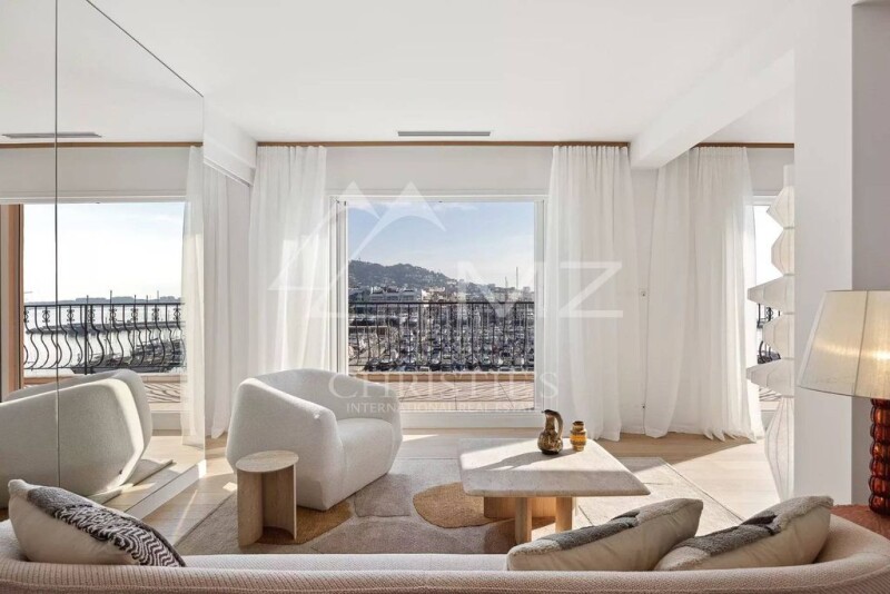 In Cannes, facing the Old Port, at the end of the Croisette, within walking distance of everything (market, Croisette and Midi beaches, Palais des Festivals, train station etc.), occupying the entire top floor, superb penthouse of approx. 120 m.sq. fully open onto vast terraces (approx. 70 m.sq) with panoramic views. Lovely living room with fitted kitchen opening onto terrace, master bedroom with dressing room and en-suite shower room, a second bedroom with en-suite shower room and a third bedroom with study and en-suite shower room opening onto balcony and terrace. Laundry, storage and cupboards, summer kitchen on terrace. Secure parking 50 m away. État des risques et pollution: réalisé (null).