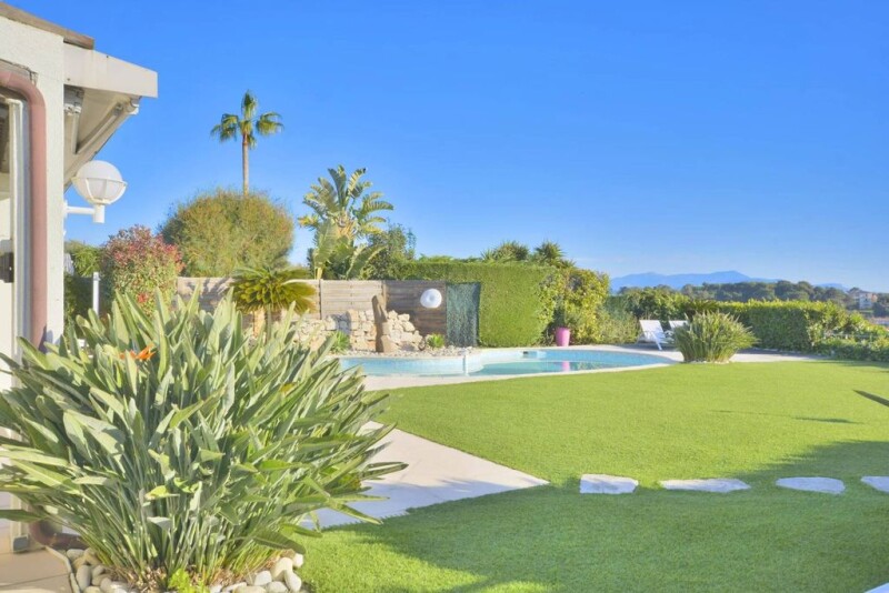 Villeneuve-Loubet : residential area, quiet, in a prestigious gated domain, come and discover this beautiful Provencal villa, enjoying a panoramic sea view Once inside, you step into a lovely entrance hall, leading off into a convivial spacious and bright living/dining room cathedral ceilings creating beautiful reception area which is decorated with a focal fireplace and large bay windows lead out to the pool and terrace area, office area, well equipped fitted kitchen, finally there are 3 bedrooms and 2 bathrooms. Planted landscaped and enclosed grounds adorned with beautiful swimming pool area, where the glistening Mediterranean sea stretches out in front of you, the perfect setting to relax and unwind, whilst knowing amenities are all close by should you need to leave your bubble of peace and quiet.